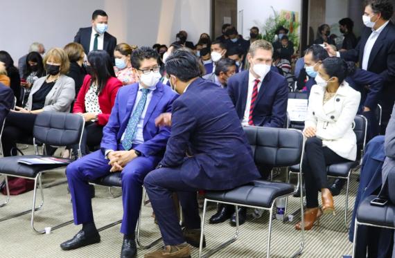 Zum Abschluss ihres Besuchs nahm Frau Dr. Stolte noch an dem Seminar zum Thema “Rechtsstaat: 30 Jahre Herausforderungen, Fortschritte und Lektionen in Lateinamerika” teil. Referenten waren die Richterin am ecuadorianischen Verfassungsgericht und Professorin der USFQ Ecuador, Daniela Salazar; der kolumbianische Richter am Interamerikanischen Gerichtshof für Menschenrechte, Humberto Sierra Porto; der Leiter der Kathedra für Verfassungsrecht UCAB und ehemaliger Präsident der Interamerikanischen Menschenrechtskommission, Carlos Ayala sowie die Direktorin des Rechtsstaatsprogramms für Lateinamerika der KAS, Dr. Marie-Christine Fuchs. Im Rahmen der Veranstaltung wurde auch die Publikation zum Thema „Rechtsstaat und Menschenrechte“ aus künstlerischer Sicht vorgestellt, die anlässlich des 30. Jubiläums des Rechtsstaatsprogramms Lateinamerika herausgegeben wurde.