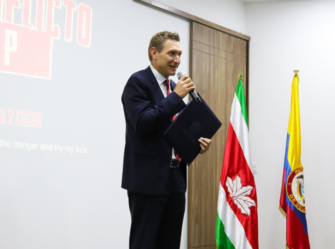 Am 17. August nahm sie an der Präsentation des ersten Kapitels der Dokumentarreihe “PostConflicto Corp: Von Smaragden, Koka und Kakao” in der „Casa de Boyacá“ in Bogotá teil. Mit der Dokumentarreihe sollen Initiativen vorgestellt und unterstützt werden, die in der Postkonfliktphase entstanden und heute beispielhaft für die Transformation und Friedenskonstruktion in Kolumbien sind. In diesem ersten Kapitel der Reihe wird die Geschichte von ehemaligen Minenarbeitern und Koka-Anbauern aus der Gegend erzählt, die heute durch legale Alternativen mehr Frieden in ihre Region gebracht haben, vor allem durch den Anbau von Kakao; die Uraufführung des Films fand in Boyacá mit der dortigen Bevölkerung statt.