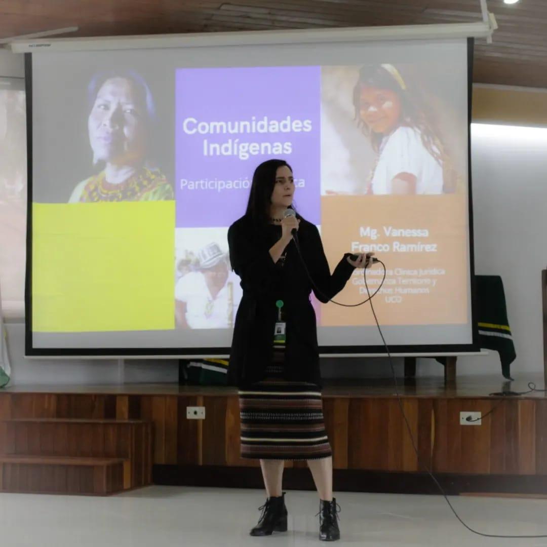 Die Dozentin der Juristischen Fakultät der UCO, Vanessa Franco Ramírez gab einen kurzen Überblick über die Diskrepanzen zwischen den Regelungen der kolumbianischen Verfassung und der Realität der indigenen Völker in Kolumbien. Das Hauptproblem sei die fehlende Autonomie; obwohl die Indigenen eine eigene soziale und politische Organisation besäßen, werde deren Ausübung von den Normen und Vorgaben des Staates beschränkt.