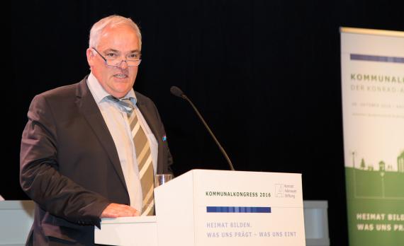 In Anlehnung an das Motto des Kommunalkongresses "Heimat bilden. Was uns prägt - Was uns eint" wurde im Laufe des Tages viel über den Begriff Heimat diskutiert. Hierzu wurden nicht nur Philosophen und Politiker, sondern u.a. auch Herbert Grönemeyer zitiert, der bereits im Jahr 1999 sang: „Heimat ist kein Ort, Heimat ist ein Gefühl“. Der Vorsitzende der Konrad-Adenauer-Stiftung Dr. Hans-Gert Pöttering mahnt in seiner Begrüßungsansprache im Erfurter Kaisersaal davor, Heimat als geschlossenen Raum zu betrachten, zu dem kein anderer Zugang hat. „Wer aus seiner Heimat vertrieben wird, der leidet“, so der ehemalige Präsident des Europäischen Parlaments in Hinblick auf die große Zahl an Flüchtlingen, die in unserem Land Zuflucht suchen. Die Kommunalpolitik leiste eine besonders wichtige Aufgabe dabei, Menschen zu einen und ihre Heimat zu prägen. „Kommunalpolitiker sind Einheitsstifter“, so Pöttering abschließend. Staatssekretär Dr. Hermann Onko Aeikens, der in Vertretung des Ministers für Ernährung und Landwirtschaft Christian Schmidt MdB nach Erfurt gekommen war, betont indes wie wichtig eine solide Finanzausstattung für die Kommunen ist, um die täglichen Herausforderungen wie etwa die zunehmende Abwanderung in die Ballungszentren, die Modernisierung der Infrastruktur sowie den Breitbandausbau zu stemmen. Heimat sei für ihn ein sehr facettenreicher Begriff, der neben Tradition, Sprache und Familie auch Familie und Freunde sowie bestimmte Lebensmittel umfasse. „Ängste entstehen dort, wo Menschen unsicher sind und die Art, wie sie leben, in Frage gestellt wird“, so Aeikens. Gerade in Zeiten von Globalisierung und zunehmend geforderter Flexibilität z.B. durch den Arbeitgeber, brauche jeder Mensch Wurzeln, sagt Mike Mohring, Vorsitzender der CDU-Landtagsfraktion in Thüringen. „Je stärker ein Mensch mit seiner Heimat verwurzelt ist, umso besser kann er auf Krisen und andere Widrigkeiten reagieren“, so der Landespolitiker weiter. Einig sind sich die Politik dahingehend, dass Heimat ein sehr facettenreicher Begriff ist, der weit über den konkreten, an dem wir leben oder in dem wir geboren wurden, hinausgeht.