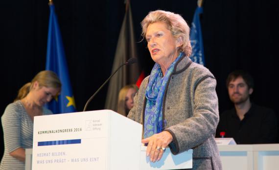 Wie schmeckt Heimat? Wie hört sich Heimat an? Im Adenauer-Lab wurden zum Abschluss des Kommunalkongresses viele verschiedene Blickwinkel betrachtet und auf diese Weise „nicht alltägliche Perspektiven eröffnet“, so Frankfurts langjährige Oberbürgermeisterin Dr. Petra Roth. Insgesamt sieben sogenannte „Heimatstifter“ dürfen in diesem neuen Veranstaltungsformat in jeweils fünf Minuten darstellen, was sie unter dem Begriff Heimat verstehen. Für Sternekoch Marcello Fabbri ist Heimat das Lieblingsgericht, das wir noch aus Kindertagen kennen. Für die dreiköpfige Kölschrock-Band Pläsier hingegen ist es der kölsche Dialekt, der den Charme ihrer Stadt ausmacht und den sie mit Heimat verbinden. Dass Heimat im Kleinen beginnt, zeigt Christine Bardin. Sie ist die Bürgermeisterin von Ummerstadt, mit 489 Einwohnern die kleinste Stadt Thüringens und zweitkleinste Stadt Deutschlands. „Wir müssen von der anonymisierten Gesellschaft wieder zurück zur Gemeinschaft“, sagt Petra Roth. Die ehemalige Oberbürgermeisterin und Leiterin des Beirates Kommunalpolitik der Konrad-Adenauer-Stiftung berichtet im Adenauer-Lab über die Herausforderungen der Kommunalpolitik in einer Millionenstadt wie Frankfurt. Die Integrationsbeauftragte des Deutschen Fußball-Bundes Gül Kesklinler stellt dar, wie wichtig die Zugehörigkeit zu einem Sportverein ist, um sich an einem Ort heimisch zu fühlen. Dennoch müssten wir auch akzeptieren, dass Menschen, die in Deutschland eine neue Heimat finden, ihre alte Identität nicht komplett ablegen wollen, so Keskinler. Marius Fletschinger, seelsorgender Priester in der Katholischen Hochschulgemeinde Mannheim, verortet Heimat in seinem Kurzimplus nicht zuletzt im Glauben und betont einmal mehr die Bedeutung des lokalen ehrenamtlichen Engagements. Bevor die „Heimatstifter“ untereinander und mit dem Publikum ins Gespräch kamen, durfte Claus Kuhlmann, Gewinner des Videowettbewerbs „100 Sekunden Heimat“, seine Kurzfilm dem Publikum präsentieren. Für den in Berlin lebenden Filmemacher ist Heimat nicht der Geburtsort, sondern der Ort, an man eine Zukunftsperspektive und Freunde hat. Kuhlmann warnt gleichzeitig davor, dass der Heimatbegriff von den falschen Menschen vereinnahmt und z.B. von Rechtspopulisten instrumentalisiert wird. „Wir müssen den Heimatbegriff positiv besetzen“, fordert Kuhlmann.