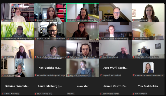 Die Teilnehmerinnen und Teilnehmer dieser digitalen Runde hatten sich aus den unterschiedlichsten Städten und Gemeinden des Bundesgebiets dazugeschaltet, und es zeigte sich ein fachlich spannender Querschnitt aus kommunalpolitisch Engagierten – Stadträte und Mitarbeitende von Kommunalverwaltungen auf Landesebene, in Landkreisen oder in Städten. Die Netzwerkteilnehmer einten die Themen Städtebau, Stadtentwicklung, Stadtplanung, Bauleitplanung oder Stadtgestaltung, Mobilität und Verkehrswesen; einige forschen und lehren an Hochschulen, Instituten oder beschäftigen sich auf Verbandsebene mit diesen oder verwandten Themen.