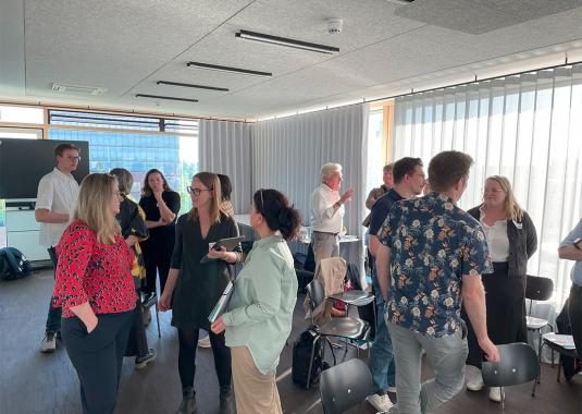 Veronika Lévesque brachte die Netzwerkmitglieder nach kurzen Impulsen immer wieder in kleinen Arbeitsgruppen ins Gespräch. Dabei trugen die Teilnehmenden ihre Erkenntnisse aus den Vorträgen zusammen und sollten das Erlernte im zweiten Schritt auf die eigene Arbeitsumgebung übertragen. Darauf aufbauend war der Arbeitsauftrag, gemeinsam Lösungen zu erarbeiten, wie das Gehörte konkret im Arbeitsumfeld umgesetzt werden könnte.