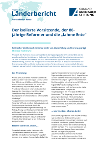 Sollte die Regierung nicht liefern, so kritische Stimmen, bestehe für Moon zumindest die Gefahr, dass sich Wähler und neue Parteiführung von ihm abwenden und er als „lahme Ente“ 22 endet. Falls sich sein Management in der Krise aber aufs Neue bewährt und die Neuaufstellung der Opposition weiter auf sich warten lässt, könnte er auch der Herr der Lage bleiben.
