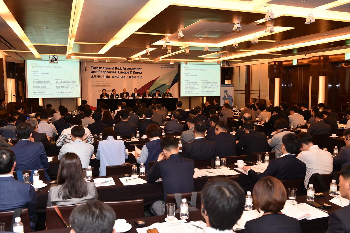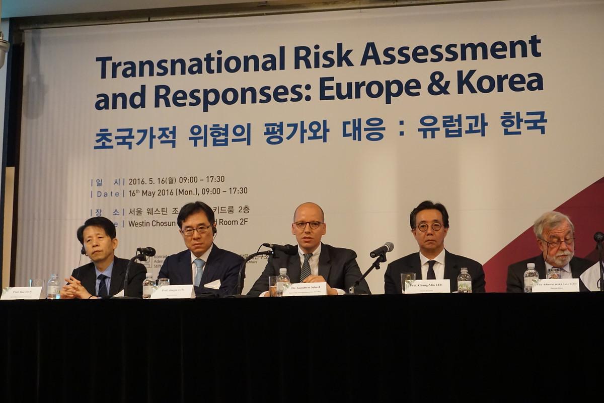 Die diesjährige Veranstaltung behandelte die Einschätzung von potenziellen Risiken im Zusammenhang mit drei großen sicherheitspolitischen Themen: Gefahren aus dem Cyber-Raum sowie die Herausforderung durch Flüchtlings- und Migrationsströme und Epidemien/Pandemien. Teilgenommen haben Vertreter aus den Bereichen Sicherheit, Verteidigung und Wiedervereinigung sowie Universitätsprofessoren und derzeitige sowie ehemalige Angehörige der südkoreanischen Streitkräfte. Aus Deutschland waren die Experten Dr. Gundbert Scherf (Beauftragter für die strategische Steuerung nationaler und internationaler Rüstungsaktivitäten der Bundeswehr sowie Leiter des Cyber-Aufbaustabes), Oberst Andreas Jödecke (Mitglied der gemeinsamen Taskforce von BMI und BMVg zur Bewältigung der Flüchtlingskrise), Vizeadmiral a.D. Lutz Feldt (deutsche Marine), Dr. Peter Roell (Institut für Strategie- Politik- Sicherheits- und Wirtschaftsberatung) sowie Dr. Manfred Kern (Geschäftsführer von agriExcellence) für die Konferenz nach Südkorea gekommen.