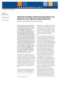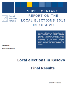 Nach der Veröffentlichung des Handbuches für die Lokalwahlen im Kosovo, stellt die Konrad-Adenauer-Stiftung hiermit einen finalen Bericht über die Ergebnisse der Wahlen, die Beteiligung der Wähler und über den Ablauf der Wahlen als auch eine umfassende Medienberichterstattung zu den Kommunalwahlen im Kosovo.