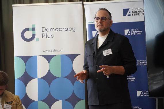 Die erste große Sitzung, Demokratie im Wandel – vom öffentlichen Raum zum digitalen Raum, unter Leitung von Bernard Zeneli, analysierte, wie soziale Netzwerke, algorithmische Feeds und digitale Mobilisierung die politische Beteiligung verändern und faktenbasierte Debatten erschweren. Die Diskussion verband interaktive Elemente mit Gruppenarbeit.
