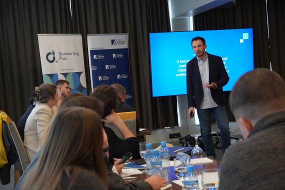 Nach dem Mittagessen folgte der Workshop Wahrheit im Zeitalter der Deepfakes, durchgeführt von Visar Prebreza, bei dem die Teilnehmenden echte Beispiele von KI-Desinformation analysierten. Die letzte Sitzung des Tages, Digitale Rechte und KI-Regulierung, geleitet von Labinot Leposhtica, behandelte Datenschutz, Privatsphäre und die Bedeutung des EU AI Act für Kosovo. Der Abend klang mit Dinner & Dialogue – Digitale Freiheiten und einem interaktiven Quiz aus.