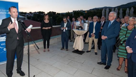 Das Europäische Ideennetzwerk (IDEAS) und die EVP-Fraktion haben vom 29. Juni bis 02. Juli ihre diesjährige Jahrestagung unter dem Titel: „Geopolitik und europäische Integration" in Split veranstaltet. In Anwesenheit zahlreicher EVP-Abgeordneter aus verschiedenen Ländern überreichte der EVP-Fraktionsvorsitzende Manfred Weber dem KAS-Vorsitzenden, Dr. Hans-Gert Pöttering die Auszeichnung „Francisco Lucas Pires“ für herausragende Beiträge zur Entwicklung und Stärkung des EU-Parlaments.