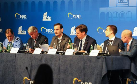 1. v. l. Matthias Schäfer (Leiter des KAS-Teams Wirtschaftspolitik) und 3. v. l. Ivana Maletić (EVP-Abgeordnete der kroatischen EVP-Partnerpartei HDZ)