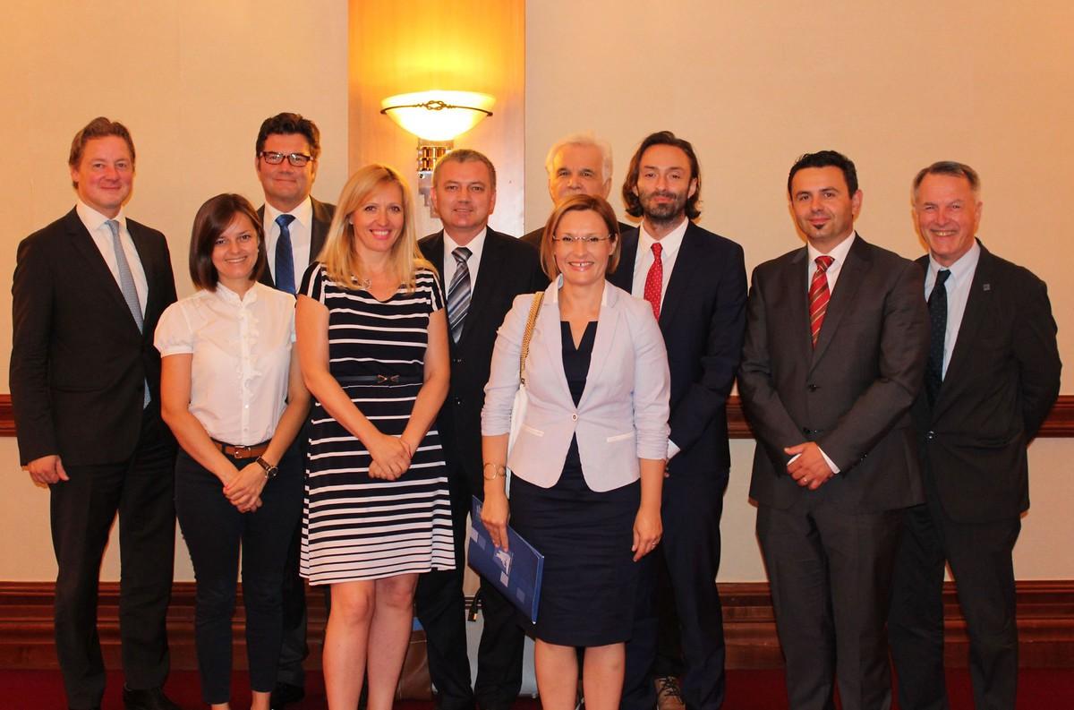 v. l. n. r. Nicholas Baron Adamovich (Vorsitzender der AHK Kroatien), Daniela Buntak (AHK Kroatien), Thomas E. Schultze (Botschafter der Bundesrepublik Deutschland in Kroatien), Vesna Torbarina, Darko Horvat (Industrieminister der Republik Kroatien), Prof. Dr. Mladen Vedriš, Ivana Radić, Boris Drilo, Vjeran Vrbanec und Dr. Michael Lange (KAS Kroatien)