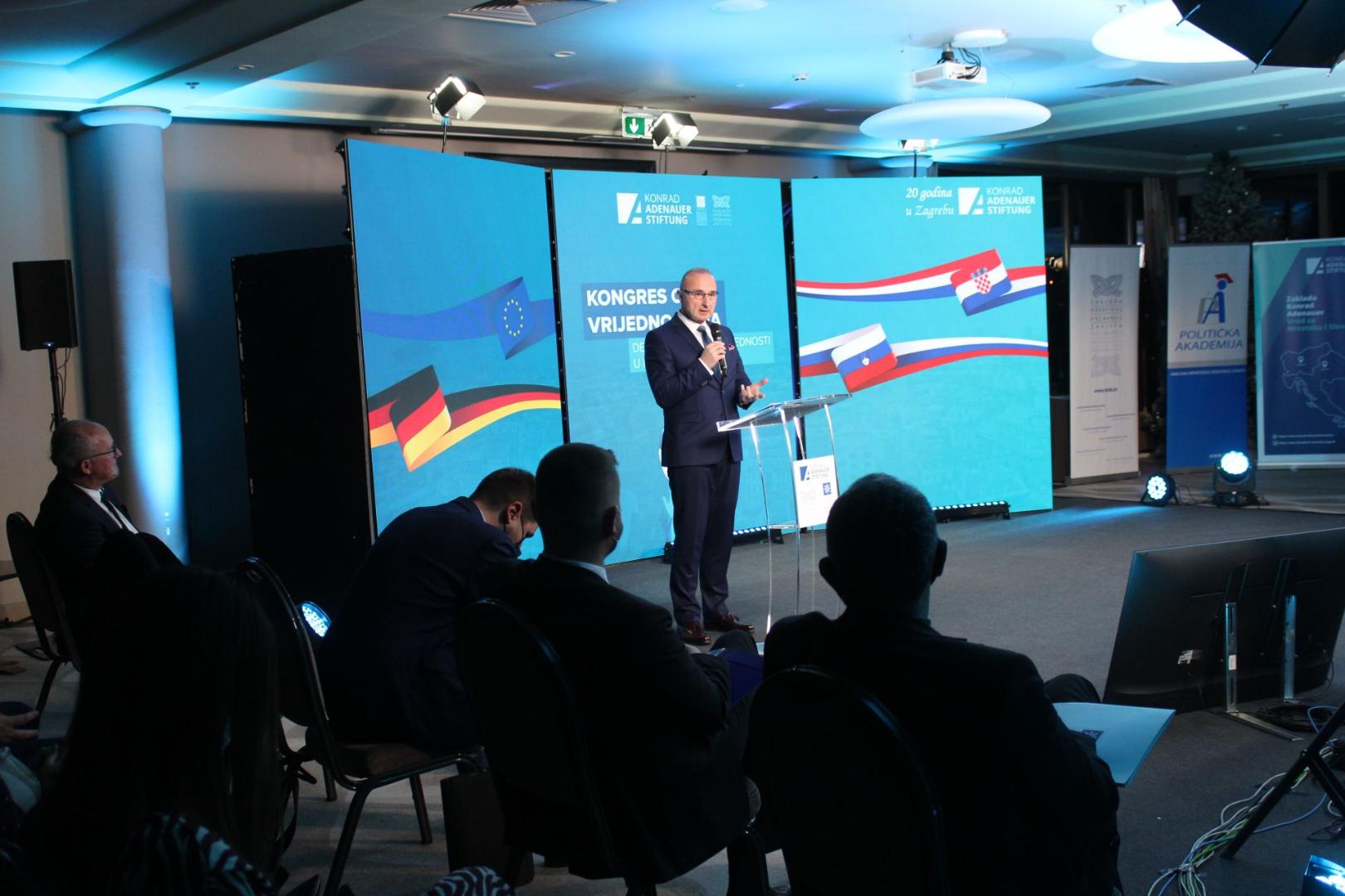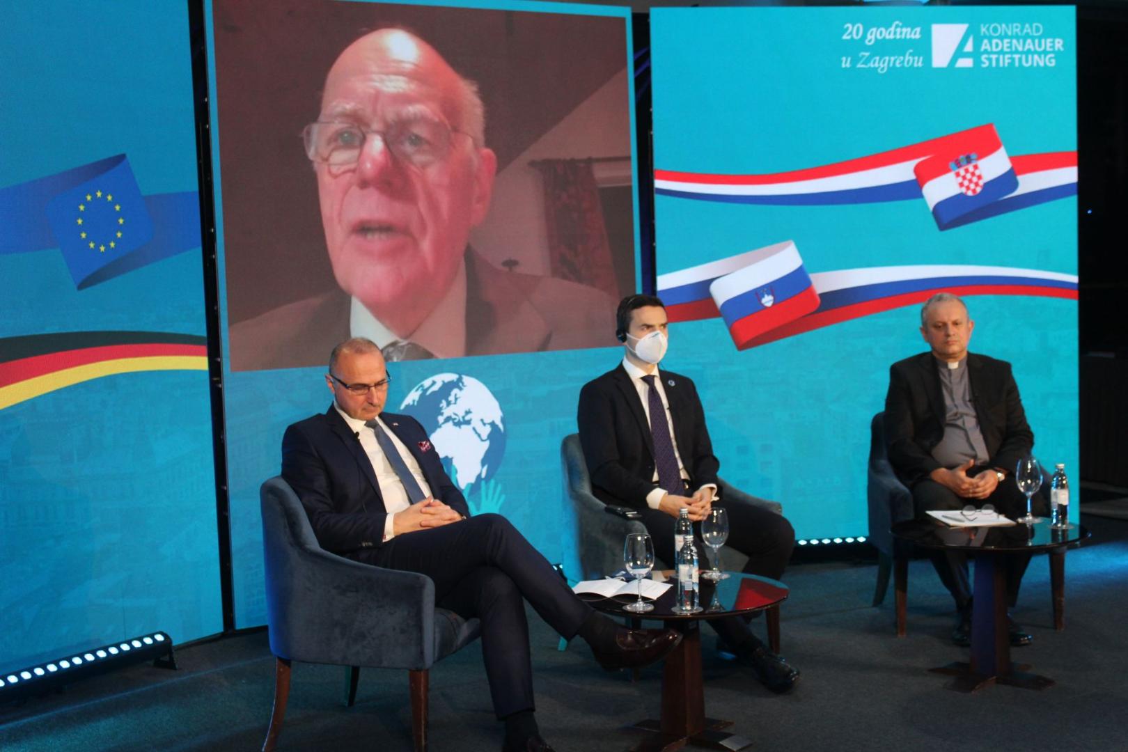 Die Konrad-Adenauer-Stiftung veranstaltete zusammen mit der HDZ-Stiftung ZHDZ und der Kroatischen Katholischen Universität am 6. Dezember 2021 in Zagreb ihren 9. Wertekongress zum Thema „Christlich-demokratische Werte in Politik und Gesellschaft“. In Rahmen des Kongresses feierte das KAS Auslandsbüro 20 Jahre Bestehens in Kroatien. In Anwesenheit der Teilnehmer der 2. Generation der KAS/ZHDZ Begabtenakadmie, diskutierte der Vorsitzende der Konrad-Adenauer-Stiftung und Präsident des Deutschen Bundestages a.D., Prof. Dr. Norbert Lammert mit dem stellv. Ministerpräsidenten und Verteidigungsminister der Republik Slowenien, Matej Tonin und dem Rektor der Kroatischen Katholischen Universität, Prof. Dr. Željko Tanjić über die Bedeutung der Christlich-demokratischen Werte in diesen herausfordernden Zeiten der COVID-19-Pandemie.