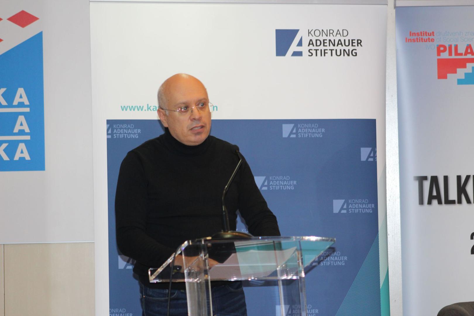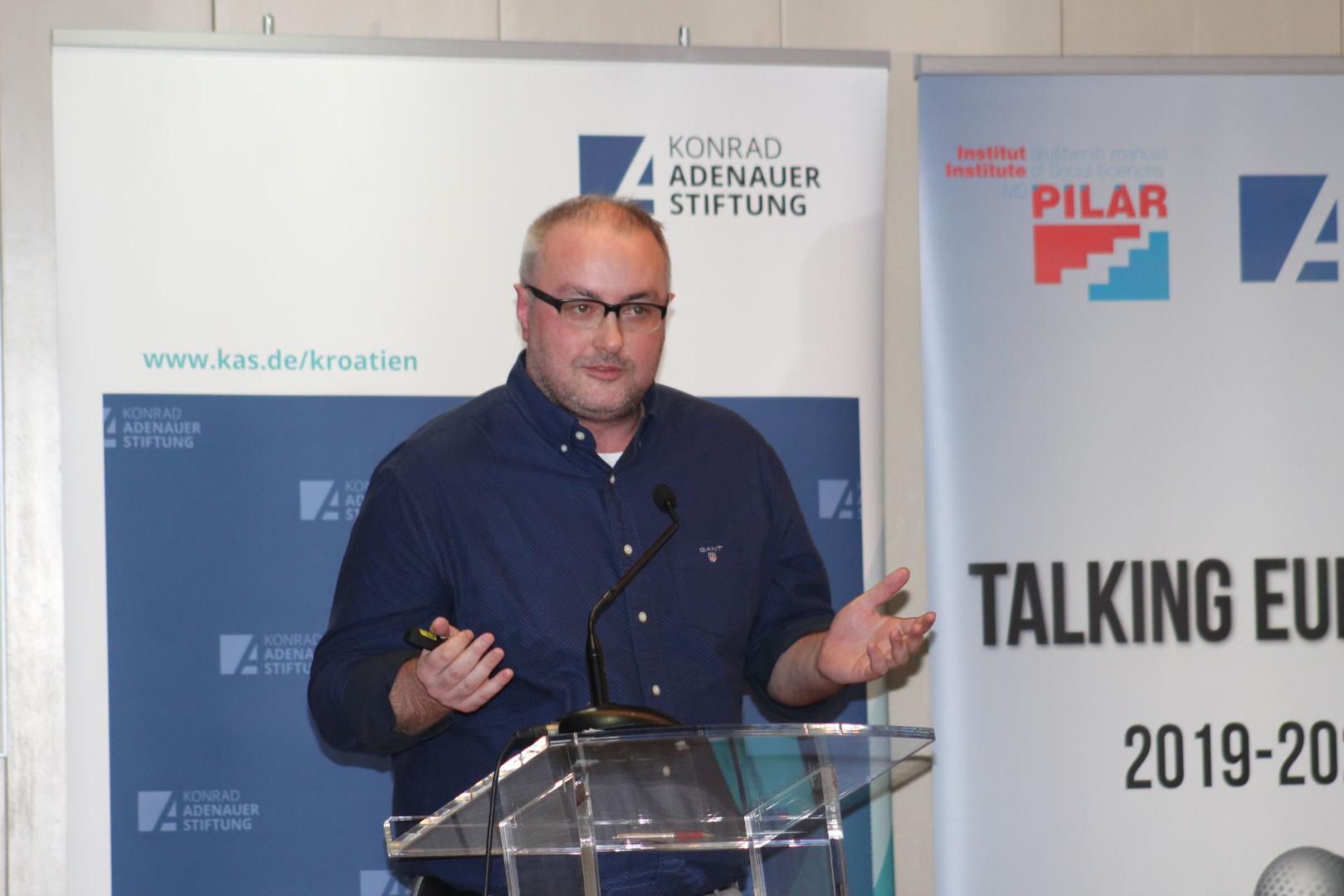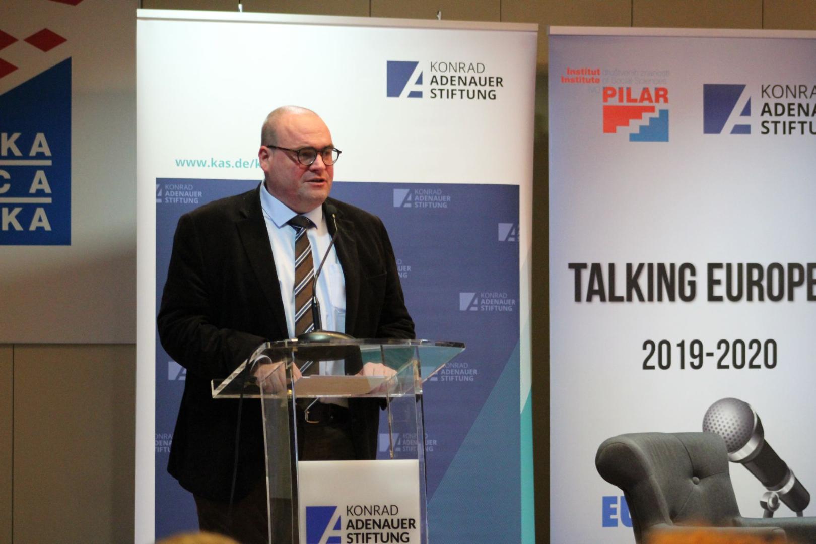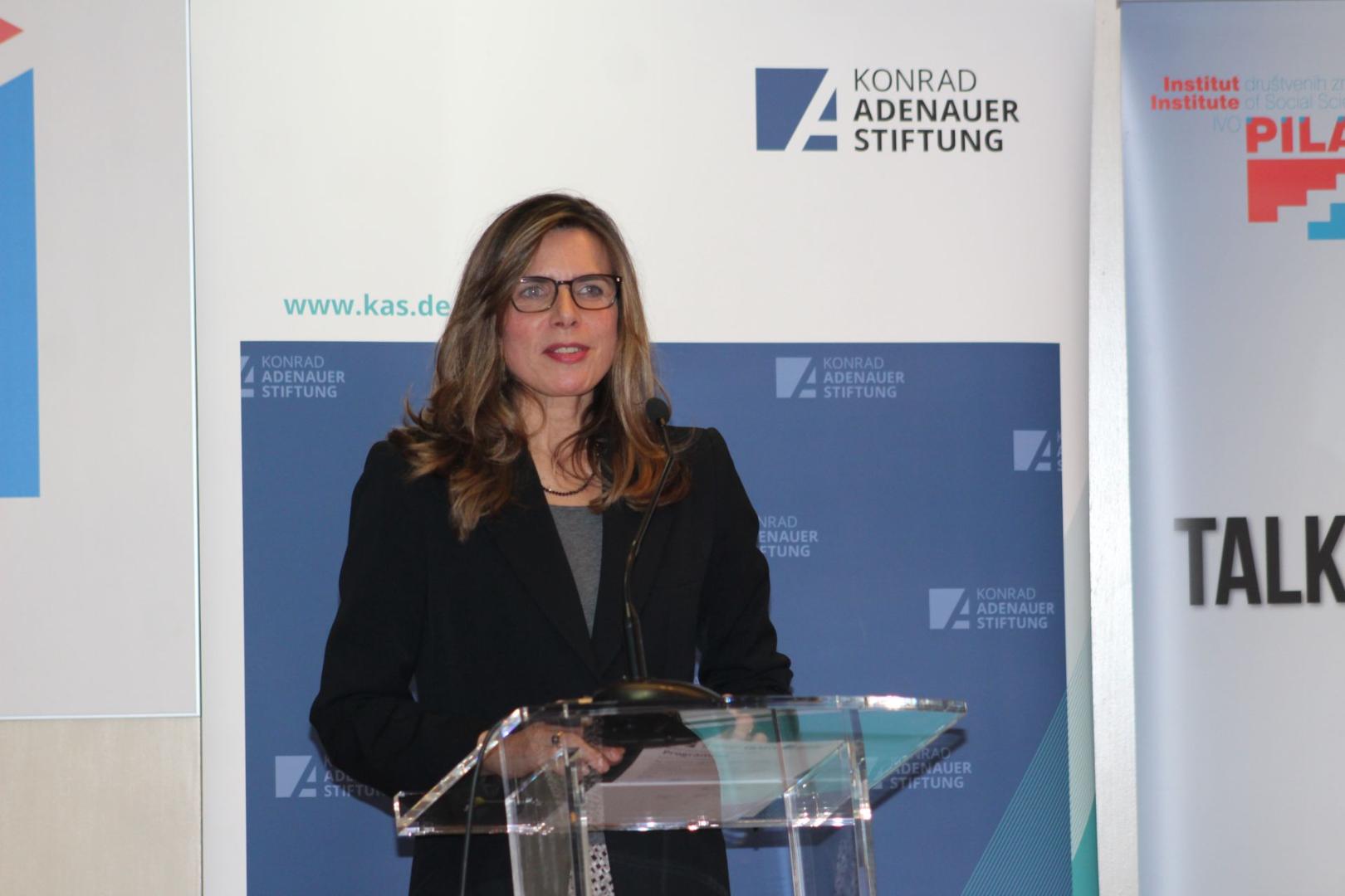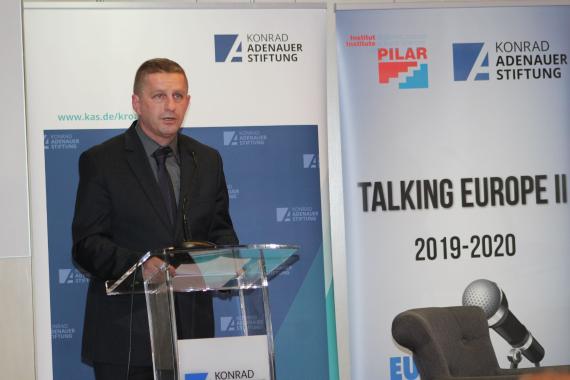 Dr. Marin Knezovic von der Stiftung der kroatischen Diaspora, Dr. Zeljko Holjevac, der Direktor des Instituts für Sozialwissenschaften Ivo Pilar, Holger Haibach, Leiter des KAS Büros in Zagreb, Dr. Senada Selo Sabic vom Institut für Entwicklung und internationale Beziehungen, Ihre Exzellenz Olive Hempenstall, die irische Botschafterin in Kroatien und Dr. Caroline Hornstein Tomic vom Institut für Sozialwissenschaften Ivo Pilar, begrüßten am Anfang das anwesende Publikum. Sie hoben die Zusammenarbeit so einer großen Zahl von verschiedenen Institutionen hervor und betonten, dass das Ziel der Konferenz sei, Vertreter der Emigrations- und Immigrationsländer zu versammeln, um gemeinsame Antworten auf akutelle Herausforderungen zu finden. Sie unterstrichen, dass sowohl Kroatien als auch Irland eine lange Geschichte der Migrationen hätte. Migration sei für Europa eine interessante Frage, die positive und negative Aspekte beinhalte.