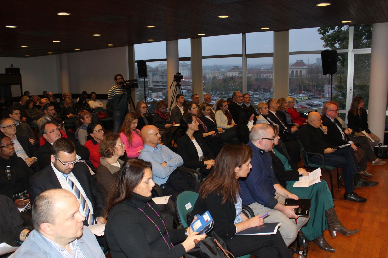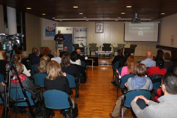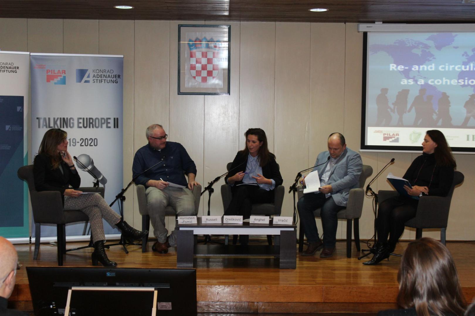 In der Podiumsdiskussion diskutierten Croatiana Orešković vom Staatsbüro für Kroaten im Ausland, Alida Vracic vom Institut für die Wissenschaft vom Menschen in Wien und Dr. Remus Gabriel Anghel vom Rumänischen Institut für nationale Minderheiten in Cluj-Napoca, über verschieden Aspekte der Kreismigration in Europa. Sie wiesen darauf hin, dass man in diesem Bereich Menschen brauche, die Politiken und Antworten nicht nur entwerfen, sondern auch verwirklichen können. Die größte Herausforderung im 21. Jahrhundert sei nicht die Frage, wie man Menschen zur Immigration in das eigene Land bewegt, sondern wie man sie danach langfristig im Lande behaltet. Viel wurde darüber gesprochen, ob die Abwanderung hochqualifizierter Arbeitskräfte eine Herausforderung für die Europäischen Kohäsion sein wird. Sie besprachen die Migrationstrends in Südosteuropa und die bisherigen kroatischen Erfahrungen bezüglich des eigenen Engagements mit der Diaspora.