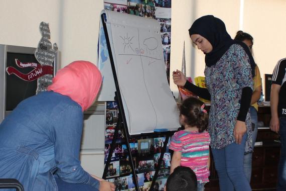 Spielerisch brachten die libanesischen und syrischen Freiwilligen den Kindern im Grundschulalter Konzepte und Begriffe zur Konfliktprävention und Menschenrechten bei. Dabei verwendeten sie verschiedene didaktische Methoden wie Rollenspiele, Kurzfilme zum Thema Mobbing sowie Pantomime, um den Kindern die Inhalte zu vermitteln.