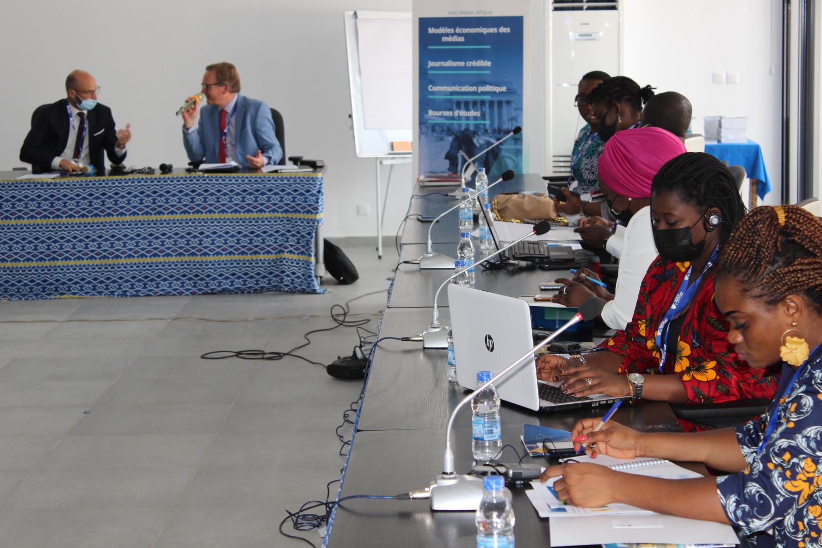 Under the guidance of Academy trainers François Gilles de Pelichy and Gérard Guèdègbé, the workshop featured individual and group exercises. Training areas included campaign strategies, public speaking, media conferences and ways to identify fake news and disinformation. The online programme, which started in March, will continue until June.