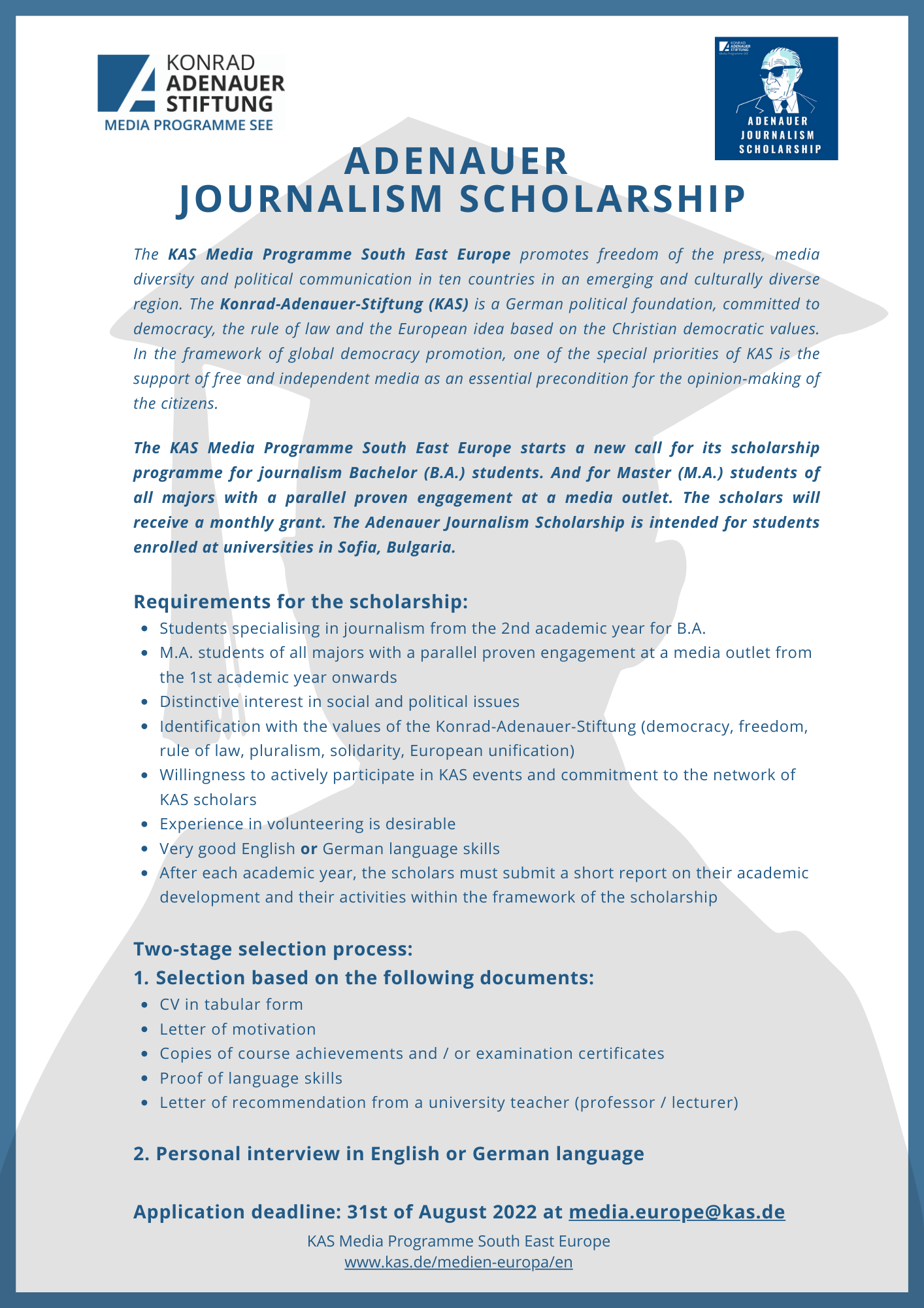 Application deadline: 31st of August 2022 at media.europe@kas.de