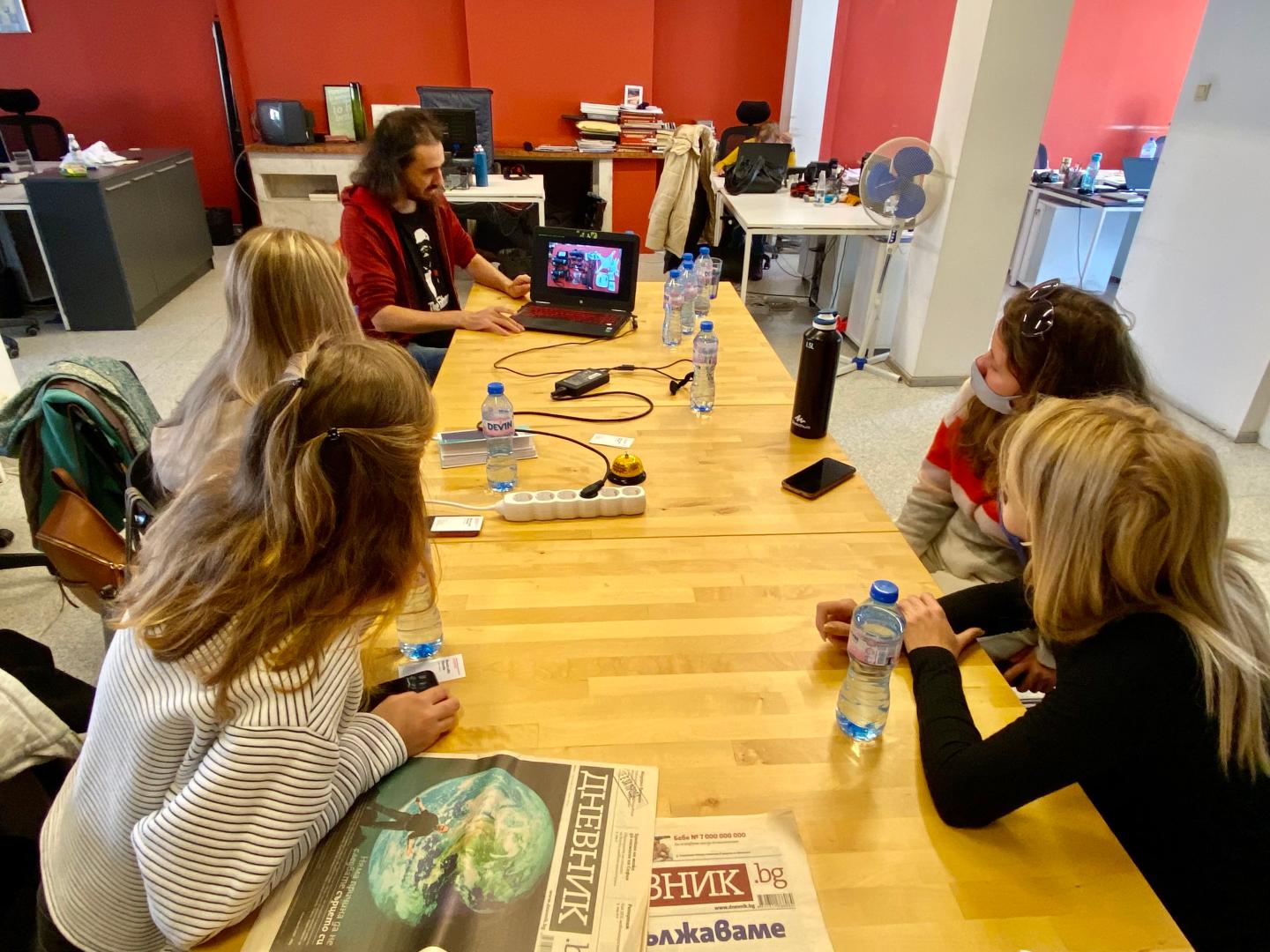 Chefredakteurin Velislava Popova begrüßte unsere Stipendiaten und diskutierte mit ihnen über die Änderungen und Folgen der Covid-19-Krise, mit denen Journalisten konfrontiert sind. Sie sprach über den Informationsüberfluss als moderne Herausforderung in der journalistischen Arbeit. Die Entwicklung von Dnevnik von einer Tageszeitung zu einem Nachrichtenportal im Internet und die Aufgaben eines Chefredakteurs waren einige der Themen der Diskussion. Georgi Kozhuharov, Fotoreporter von Dnevnik.bg, teilte mit den Stipendiaten seine Praxiserfahrungen und zeigte ihnen einige seiner Fotogeschichten von Hotspots auf der ganzen Welt.