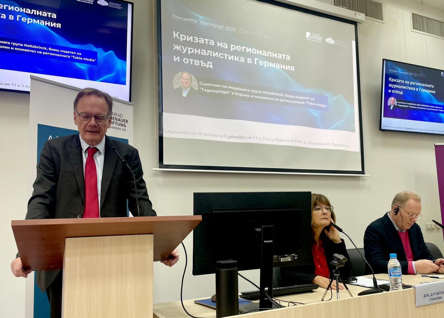 On December 5th, 2023, the sixth edition of the Adenauer Lecture took place at the Faculty of Journalism and Mass Communication of Sofia University "St. Kliment Ohridski".
