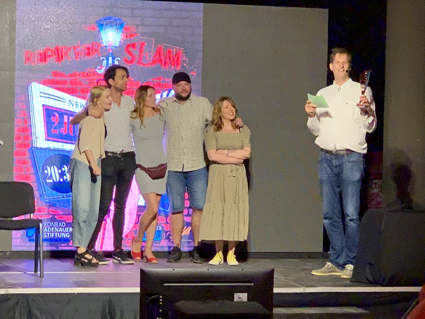 Als Siegerin wurde am Ende vom Publikum vor Ort und den Zuschauern des Online-Streams Saska Cvetkovska gewählt. Sie überzeugte mit ihrer Geschichte über die Arbeit der Chef-Fact-Checkerin Birgit Bauer beim investigativen Journalistennetzwerk OCCPR und hat nun die Möglichkeit, an der Reporter Slam-Meisterschaft 2022 in Berlin teilzunehmen.