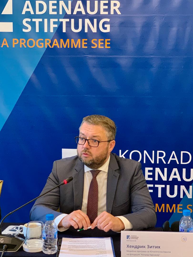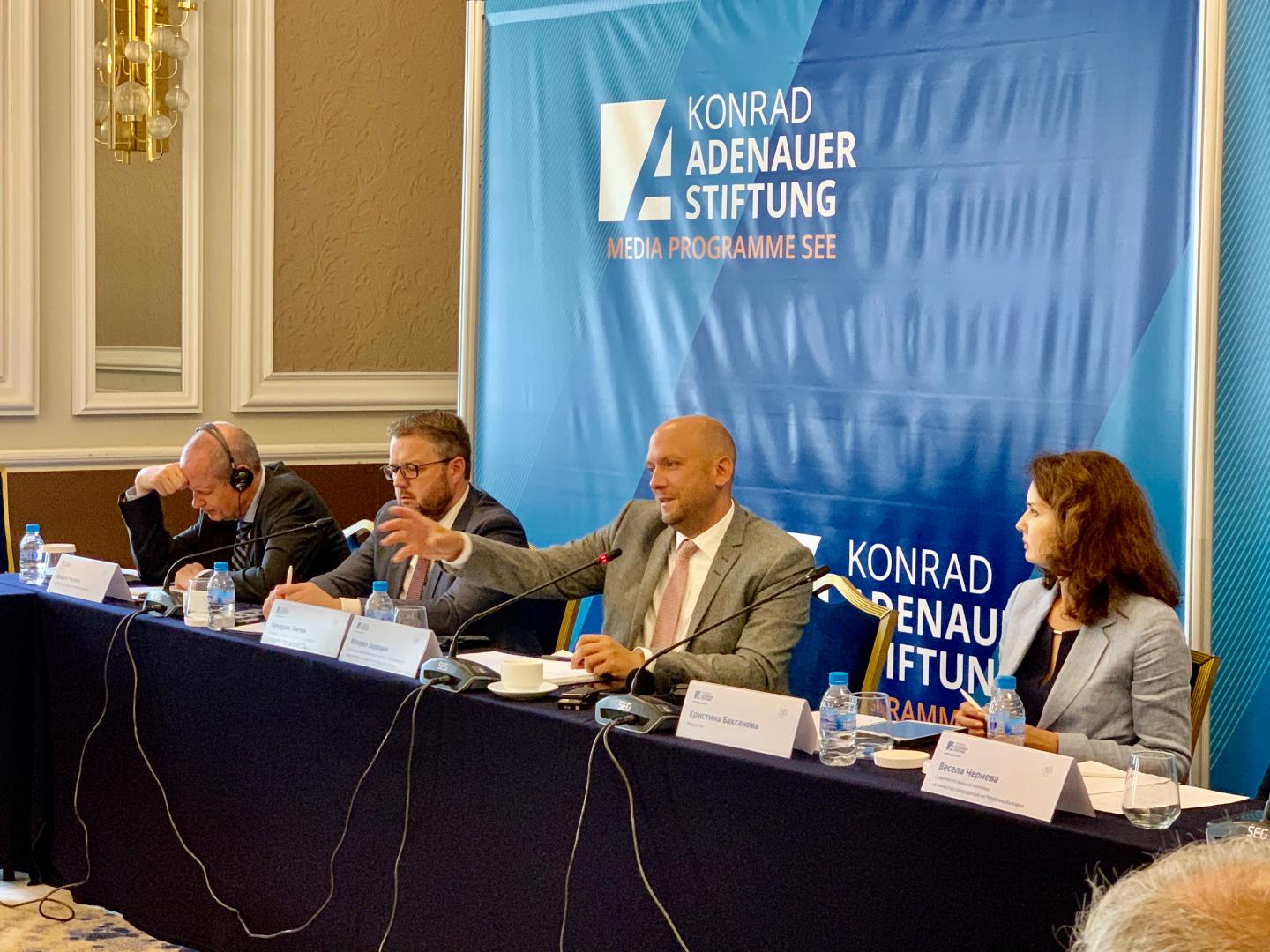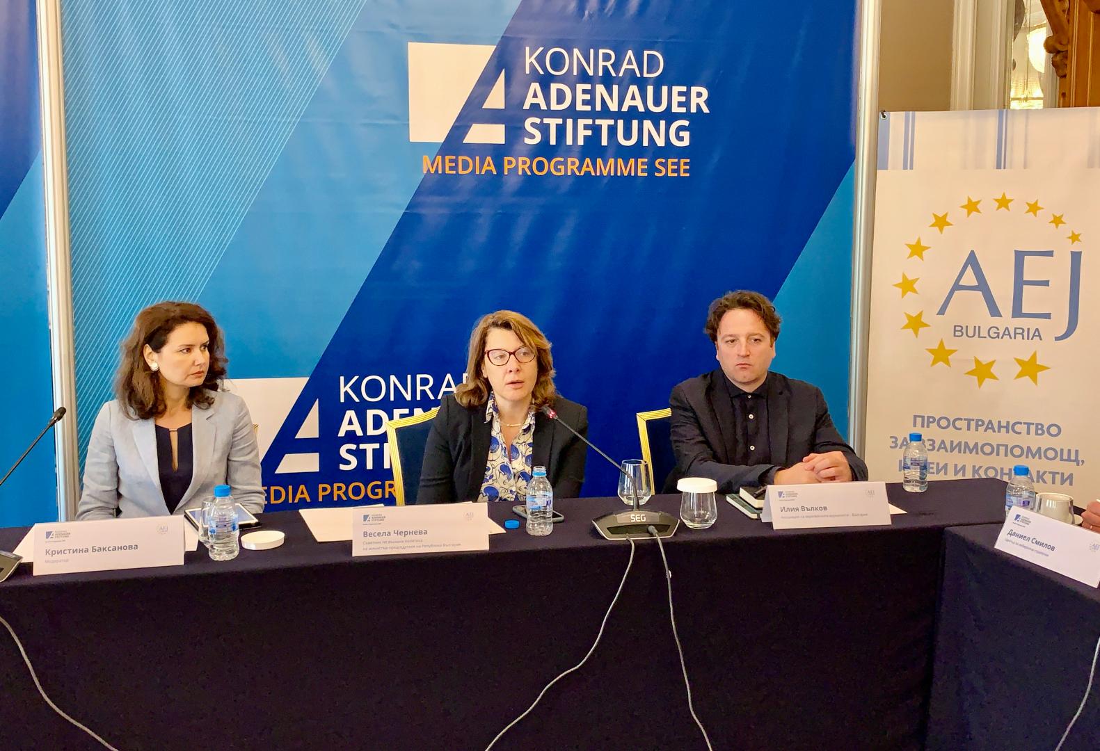 Am 7. Juni fand in Sofia ein Expertengespräch mit bulgarischen Journalistinnen und Journalisten statt - anlässlich des nächsten Gipfels der EU-Staats- und Regierungschefs Ende Juni in Brüssel. Die Veranstaltung wurde vom KAS-Medienprogramm in Kooperation mit dem Europäischen Journalistenverband Bulgarien organisiert. Hauptthema war der EU-Erweiterungsprozess in den westlichen Balkanstaaten im Blickwinkel einer möglichen Aufnahme von Verhandlungen mit der Ukraine. Die Situation aus deutscher Sicht schilderte Manuel Sarrazin, Sonderbeauftragter der Bundesregierung für den Westbalkan. Es kommentierte Vessela Tscherneva, außenpolitische Beraterin des bulgarischen Ministerpräsidenten. Danach wurde die Diskussion von drei bulgarischen Wissenschaftlern - Lyubomir Kyuchukov (Institut für Wirtschaft und internationale Beziehungen), Daniel Vachkov (Institut für historische Studien) und Daniel Smilov (Zentrum für liberale Strategien) – fortgesetzt. Sie diskutierten mit den Journalisten den aktuellen Konflikt zwischen Nordmazedonien und Bulgarien, der den Erweiterungsprozess blockiert. Die Experten betonten, dass die Stabilität der Region von großer Bedeutung sei und dass eine für beide Seiten geeignete Lösung gefunden werden müsse. Die Veranstaltung stand unter Chatham House Rules.