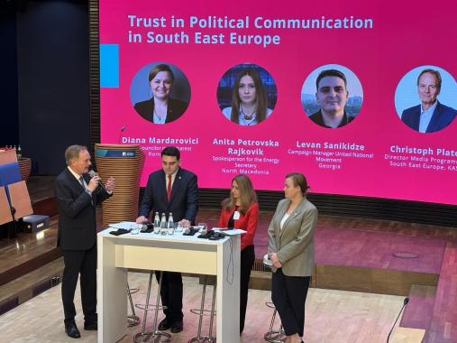 During the panel participants from Romania, North Macedonia, and Georgia presented insightful perspectives from Southeast Europe and the Black Sea region and discussed how trust in political communication can be built and maintained.