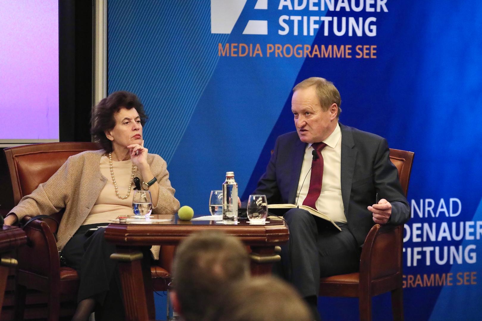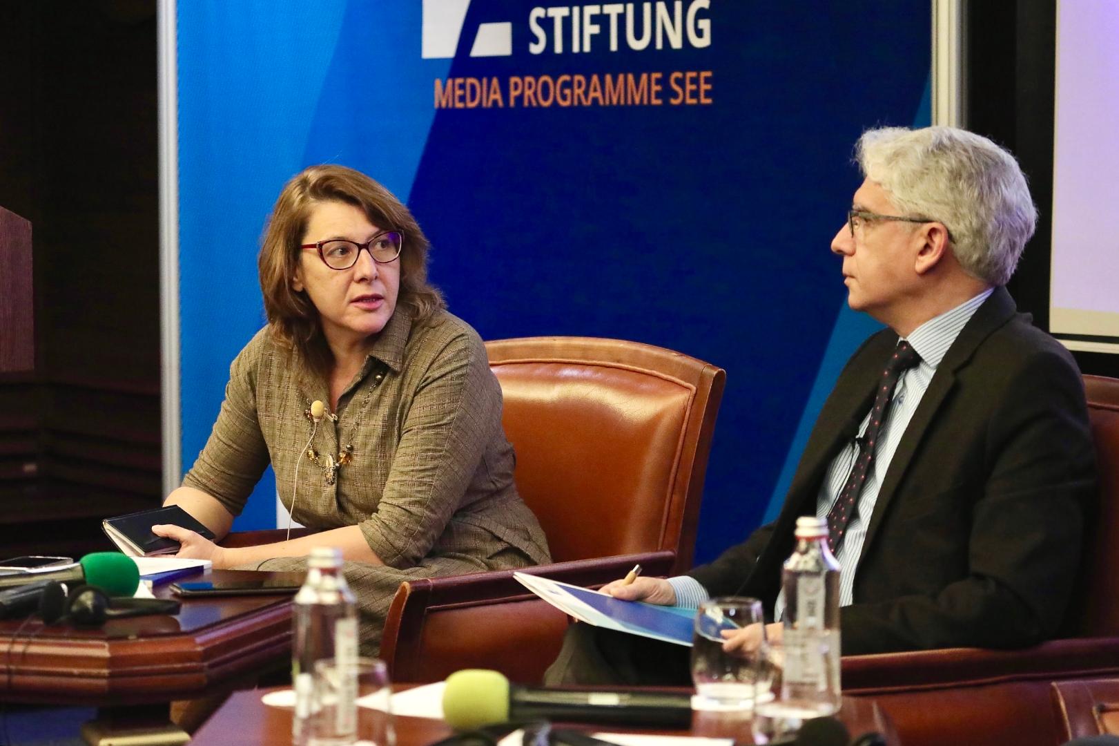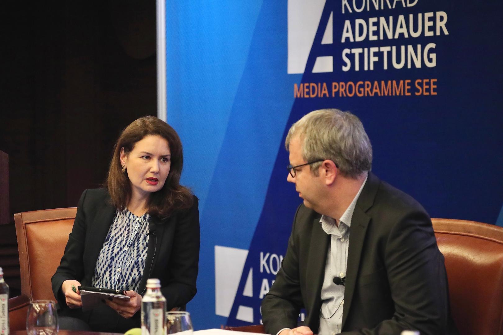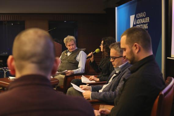 Weiteren wichtigen Input gab es von Vladimir Shopov, Visiting Fellow beim European Council on Foreign Relations, und Rumena Filipova, Vorsitzende und Mitbegründerin des Institute for Global Analytics Bulgaria. Beide Experten präsentierten ihre gemeinsame Forschungsarbeit im Rahmen der Publikation “Authoritarians on a Media Offensive in the Midst of War. The Informational Influence of Russia, China, Turkey, Iran, and the Gulf States in Southeast Europe”- finanziert vom KAS Medienprogramm Südosteuropa.