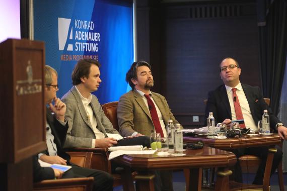 Hendrik Sittig, Leiter des KAS-Medienprogramms SOE, begrüßte die rund 130 Gäste und musste gleich zu Beginn mit Bedauern zugeben, dass "wir heute leider feststellen müssen, dass all die Warnungen der vergangenen Jahre vor den antidemokratischen Entwicklungen in Russland, all die Hinweise auf die Desinformationskampagnen, die Fake News, die von russischer Seite absichtlich produziert und verbreitet wurden - nur um unsere freiheitlich-demokratischen Gesellschaften zu spalten und zu zerstören - all diese Warnungen wichtig und richtig waren."