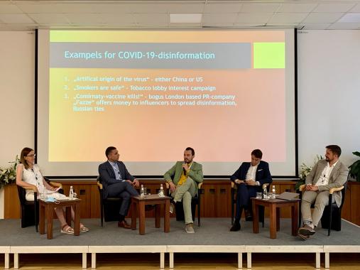 Im ersten Panel debattierten Damir Jugo (Dekan des Edward Bernays University College), Petar Markovic (Schulungskoordinator für EU-Bürgerrechte beim European Citizen Action Service), Christopher Nehring (Dozent für Medien, Geheimdienste und Desinformation an der Universität Sofia) und Adriatik Kelmendi (Direktor von Klan Kosova TV) über Strategien zur wirksamen Bekämpfung von Desinformation und anti-europäischer Narrative. Die Diskussion wurde von Dinka Živalj, Sprecherin des EU-Büros in Pristina, moderiert. Die Panelisten waren sich einig, dass die Strategien zur Bekämpfung von gezielt eingesetzten Falschnachrichten im Kontext einer globalen Krise auf die Verbesserung der Allgemeinbildung, Medienkompetenz und der Bürgerbildung aufbauen sollten. Bildung und Aufklärung sei der Schlüssel zum Aufbau sozialer Widerstandsfähigkeit und letztendlich zur Bekämpfung von Desinformation ein.