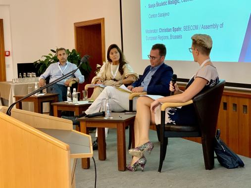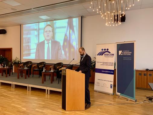 Im zweiten Panel stellten die Referenten Formen von Bürgerbeteiligung im demokratischen Prozess in den Mittelpunkt. Die Moderation des Panels übernahm Christian Spahr, SEECOM-Vorstandsmitglied und Generalsekretär der Assembly of European Regions. Die Referenten Arben Cejku (Geschäftsführender Direktor des Albanischen Zentrums für gute Regierungsführung), Suzana N. Vasiljević (Medienberaterin des Serbischen Präsidenten) und Sanja Škuletić Malagić (Kabinettschef des Premierministers des Kantons Sarajevo) sahen in der Krise auch eine Chance für die Verbesserung des Bürgerdialogs. Das Jahr 2021 habe Regierungen eine neue Sicht auf das Thema Bürgerbeteiligung eröffnet. Gewichtige politische Entscheidungen seien nicht ohne Bürgerinnen und Bürger möglich. Eine einseitige Kommunikation sei kaum mehr vorstellbar und auch nicht angemessen in Anbetracht der neuen digitalen Ära und der zahlreichen neuen Kommunikationskanäle, die die Digitalisierung mit sich bringt.