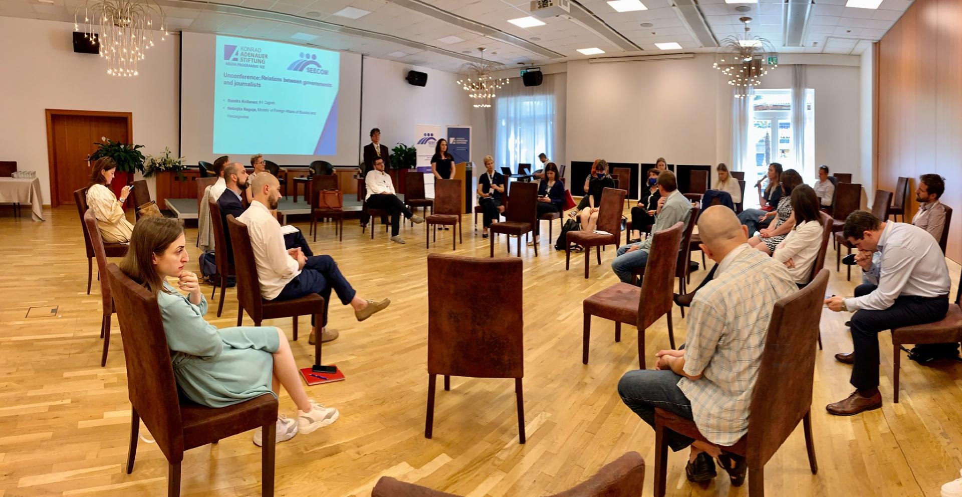 Während der sogenannten Un-Conference, die von Sandra Križanec (Redakteurin beim kroatischen Fernsehsender N1) und Nebojša Regoje (Leiter der Öffentlichkeitsarbeit im Außenministerium von Bosnien und Herzegowina) moderiert wurde, ging es um eine bessere Zusammenarbeit zwischen Pressesprechern und Journalisten - vor allem in Krisenzeiten. Die Teilnehmer hatten die Möglichkeit, Erfahrungen sowie Best Practice-Beispiele auszutauschen. Trotz zahlreicher positiver Beispiele für erfolgreiche Krisenbewältigungsstrategien wurde auch klar, dass die Kommunikation zwischen Journalisten und Pressesprechern weiterhin ausgebaut und verbessert werden muss.
