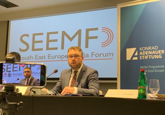 Die Überwindung von Desinformation gerade in Krisenzeiten, Kommunikation zwischen Medien und Regierung sowie Druck auf Journalisten und SLAPP-Fälle gehörten zu den wichtigsten Themen des 15. South East Europe Media Forum (SEEMF) am 3. und 4. November in Belgrad. Zur diesjährigen Konferenz, die pandemiebedingt kleiner organisiert wurde, kamen rund 150 Teilnehmer – Journalisten, Medienexperten, Politiker und NGO-Vertreter. Das KAS-Medienprogramm Südosteuropa veranstaltet das Medienforum jährlich gemeinsam mit der Südosteuropäischen Medienorganisation (SEEMO) und der Zentraleuropäischen Initiative (CEI).