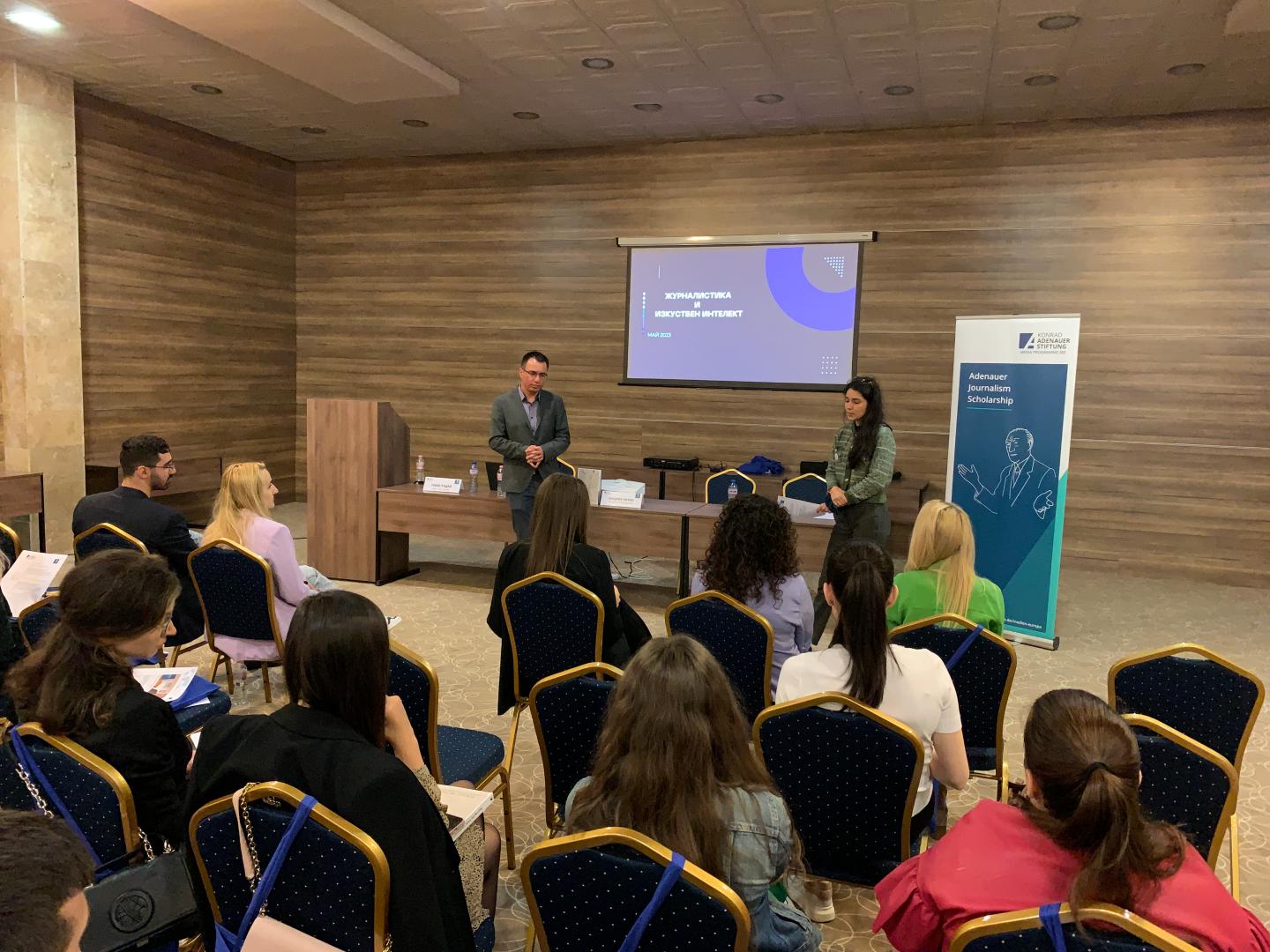 Die Konferenz erstreckte sich über zwei aufeinanderfolgende Tage und umfasste neben Vorträgen auch ein Simulationsspiel, bei der die Teilnehmer Teams bildeten und ermutigt wurden, ihr eigenes Medienprodukt zu den ausgewählten Themen zu erstellen. Eröffnet wurde die Veranstaltung mit einer Einführung durch Hendrik Sittig, Leiter des KAS-Medienprogramms Südosteuropa. Er stellte den ersten Podiumsredner vor - Ivan Radev, Mitglied des Vorstands der "Association of European Journalists - Bulgaria". Er befasste sich mit einigen Aspekten, von der automatisierten Generierung von Inhalten über personalisierte Nachrichtenempfehlungen bis hin zu den potenziellen Ideen, dass Künstliche Intelligenz (KI) die Medienlandschaft in Zukunft neugestalten wird.