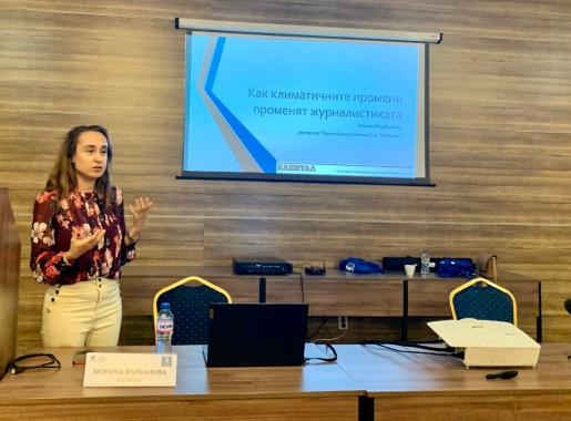 Der zweite Vortrag am ersten Tag der Konferenz wurde von der Journalistin für EU-Themen und Redakteurin des "Capital"-Magazins, Monika Varbanova, gehalten. Sie betonte die Rolle von Journalisten bei der Sensibilisierung für Themen, die den Klimawandel betreffen. Angesichts steigender Temperaturen, extremer Wetterereignisse und Umweltzerstörung sei der Bedarf an genauer und aussagekräftiger Berichterstattung noch nie so groß wie heute. Sie betonte, wie wichtig es sei, Journalisten mit dem Wissen und den Werkzeugen auszustatten, die notwendig sind, um die komplexen Themen rund um den Klimawandel effektiv zu kommunizieren.
