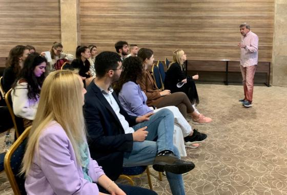 Es war jedoch das dritte Thema "Wirtschaft, Gesellschaft und Desinformation: Spiegelt der Erfolg der Medien mikro- und makroökonomische Probleme wider?", das beim Publikum am meisten Anklang fand. Der renommierte Experte und Gründer des Instituts für Marktwirtschaft Krassen Stanchev teilte sein Wissen und seine Ansichten mit den Stipendiaten. Im Anschluss an den Vortrag hatten sie die Möglichkeit, Fragen zu stellen und in einer Diskussionsrunde frei mit dem Vortragenden über das Thema zu sprechen.