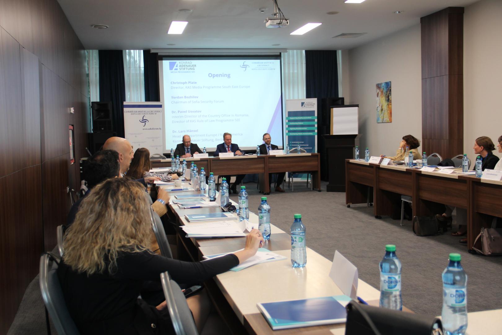 Opening the conference, Christoph Plate, Director of the KAS Media Programme South East Europe, together with Yordan Bozhilov, Chairman of the Sofia Security Forum, and Pavel Usvatov, Director of the Rule of Law Programme South East Europe of the Konrad-Adenauer-Stiftung, framed the conversation ahead. „For years, the relationship between the military and the media in the region has been marked by mistrust“, said Christoph Plate. „But the war of aggression unleashed by Vladimir Putin against Ukraine has proven to both sides that communication is now a matter of strategic importance.“
