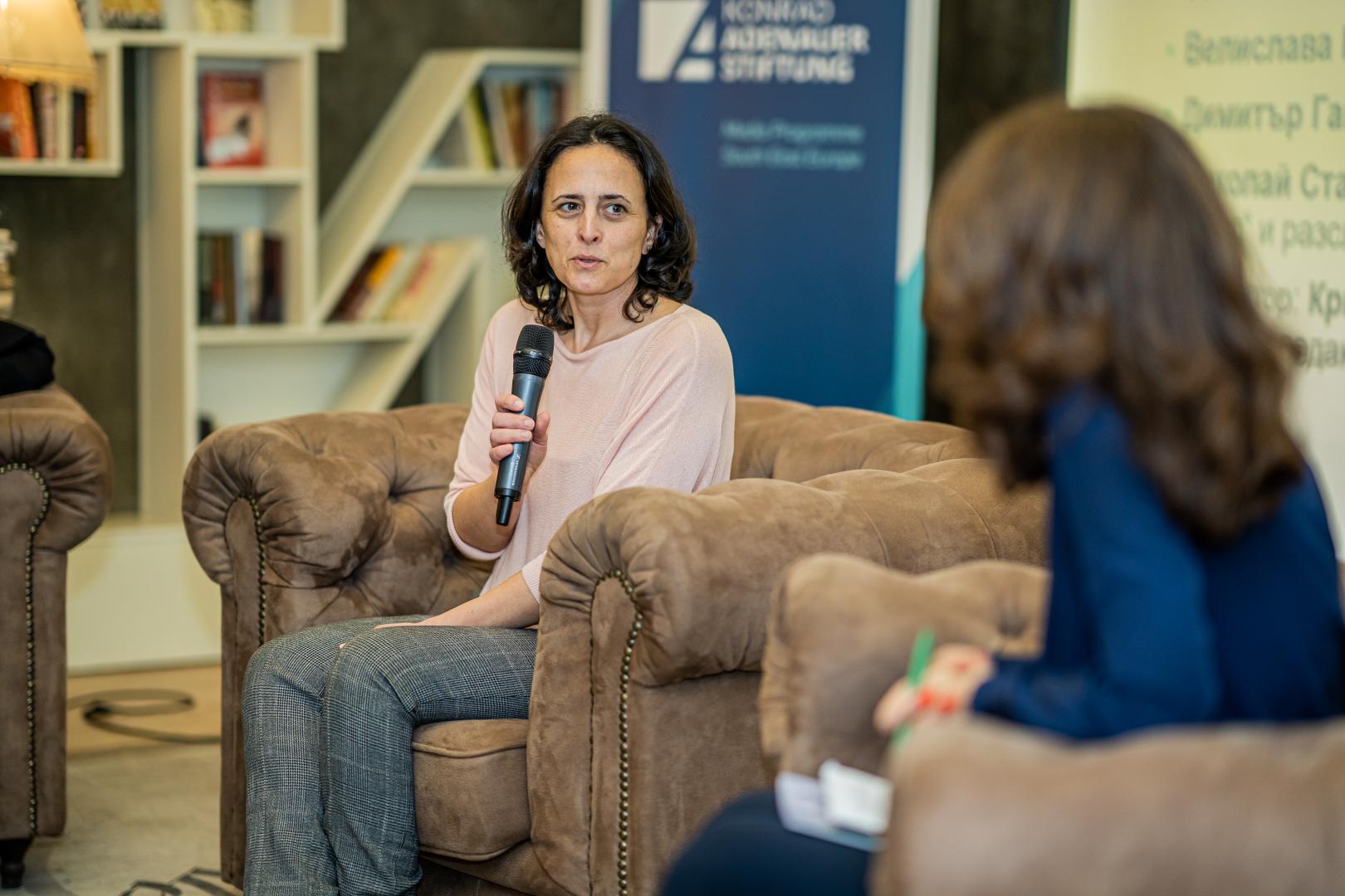 In der nachfolgenden Diskussionsrunde sprachen Genka Shikerova (Radio Free Europe/TV1), Velislava Popova (Nachrichtenportal dnevnik.bg), Dimitar Ganev (freier Investigativ-Journalist) und Nikolay Staykov (Anti-Korruptions-Fonds) über verschiedene Aspekte des investigativen Journalismus. Der Fokus lag dabei auf Qualität und Relevanz von investigativen Recherchen, Empfänglichkeit des Publikums für komplizierte und lange investigative Geschichten, Finanzierung, politischer Druck sowie regionale und überregionale Zusammenarbeit von Journalisten und Medien.