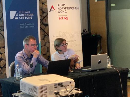 Das Seminar wurde von Dobrina Trifonova, Projektkoordinatorin beim KAS-Medienprogramm Südosteuropa, und Boyko Stankushev, Direktor des Antikorruptionsfonds, eröffnet. In ihren einleitenden Worten hoben sie hervor, dass unabhängige Journalisten in Bulgarien viele Herausforderungen – u.a. ökonomischer und politischer Druck, juristische Klagen - in ihrer Arbeit bewältigen müssen. Daher sei es wichtig, dass sie Unterstützung in der Praxis bekommen. Die Organisatoren unterstrichen die regionale Ausrichtung bei der Auswahl der bulgarischen Teilnehmerinnen und Teilnehmer – mehr als 13 Medien (TV, Radio, Online und Print) aus zehn Klein- und Großstädten waren beim Seminar vertreten.
