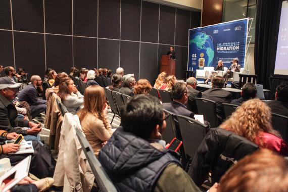 Das zweite Panel “The Challenges of Crossing Borders” sprach über die humanitären Problematiken und Menschenrechtsverletzungen welche sich Migranten auf ihrem Weg gegenübersehen. Msgr. Guillermo Ortiz Mondragón und Priester Hector Daniel Ayala, welcher die kirchliche Migrantenunterkunft in Zacatecas leitet, berichteten über die Situation in den Migrantenhäusern sowie den Alltag und die Erfahrungen der Menschen, die dort auf ihrer Durchreise Unterkunft finden. Dr. Guadalupe Correa-Cabrera (Global Fellow des Lateinamerika Programms des Wilson Centers, Washington) ging weiterhin auf die schweren Menschenrechtsverletzungen ein, die an Migranten bei ihrer Durchreise durch Mexiko begangen werden.