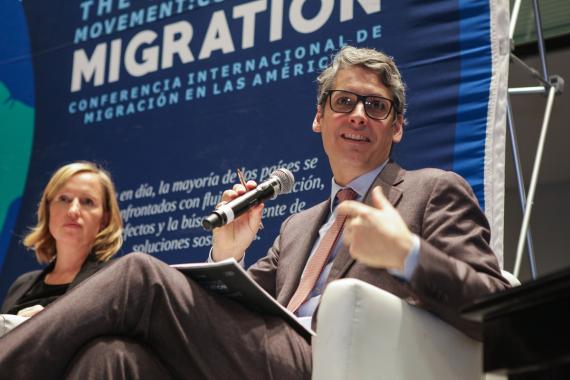 Nach Eröffnung der Konferenz durch Prof. Dr. Stefan Jost (Leiter der KAS Mexiko) fanden Einführungsvorträge zum Thema “Controlling and Steering Migration?“ im Sinne regionaler Kooperationsmöglichkeiten statt. Der Ständige Vertreter Mexikos bei den Vereinten Nationen, Juan José Gómez Camacho, stellte den “Global Compact for Migration” vor, welcher derzeit durch die UN verhandelt wird und weltweit eine geordnete, regulierte und sichere Migration anstrebt. Anschließend präsentierte Dr. James Hollifield (Akademischer Direktor und Dozent des politikwissenschaftlichen Instituts der Southern Methodist University, Dallas) die globalen Trends und aktuellen Zahlen von internationaler Migration. Jorge Martinez Pizarro (Forscher zu Demographie und Bevölkerungsentwicklung der Wirtschaftlichen Kommission für Lateinamerika CEPAL) beleuchtete den lateinamerikanischen Beitrag zum Global Compact und die regionale Koordinierung zu Migration.