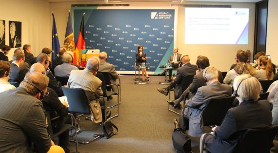 Sandu bedankte sich bei der Konrad-Adenauer-Stiftung für ihr Engagement in der Region, dafür, „dass Sie uns nicht aufgegeben haben“, und sie bat um Unterstützung beim schwierigen Prozess der Staatsreform.