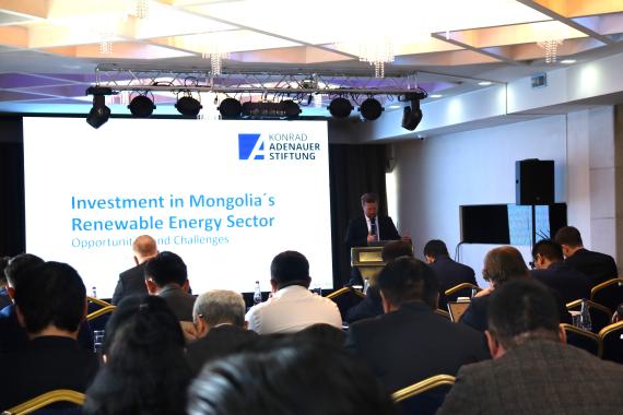 Die Konferenz brachte Abgeordnete, Regierungsmitglieder, Unternehmerinnen und Unternehmer zusammen, um den sinkenden Anteil des Privatsektors in der mongolischen Wirtschaft zu diskutieren und gemeinsam mögliche Lösungsansätze für dessen Stärkung zu erarbeiten.