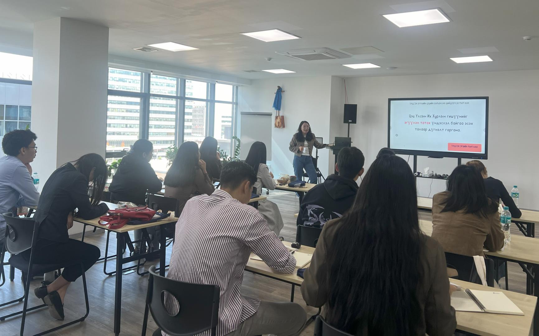 Das Einführungsseminar für die Stipendiatinnen und Stipendiaten der KAS Mongolei umfasste zwei Workshops: Der erste diente dem Erfahrungsaustausch mit ehemaligen Stipendiatinnen und Stipendiaten, während der zweite ganztägige Workshop akademische Themen wie politische Grundlagen, Demokratie, Menschenrechte und nationale Sicherheit behandelte. Zudem wurden die KAS-Aktivitäten vorgestellt und wichtige Informationen zum Sur-Place-Stipendium vermittelt.