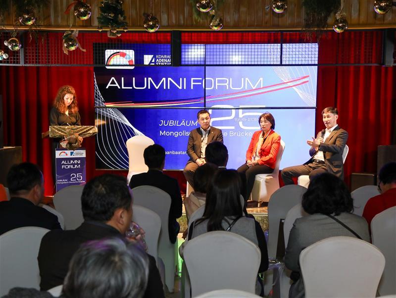 Im Rahmen des 50-jährigen Jubiläums der diplomatischen Beziehungen zwischen der Mongolei und Deutschland kamen rund 70 Deutschlandabsolventinnen und -absolventen sowie deutschsprachige Mongolinnen und Mongolen zu einem Alumni-Forum in Ulaanbaatar zusammen. Ziel der Veranstaltung war es, den Beitrag dieser Gruppe zur gesellschaftlichen und wirtschaftlichen Entwicklung der Mongolei zu beleuchten und sie zu weiterem politischem und zivilgesellschaftlichem Engagement zu ermutigen. In den Begrüßungsworten betonten unter anderem Hana Becker, stellvertretende Botschafterin der Bundesrepublik Deutschland, sowie Terbishdagva Dendev, langjähriges Parlamentsmitglied, die Bedeutung dieser Vernetzung für die Zukunft des Landes.