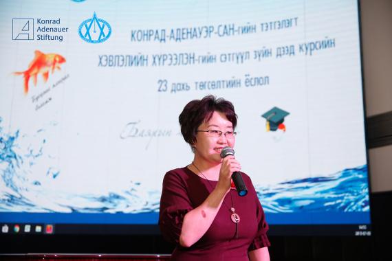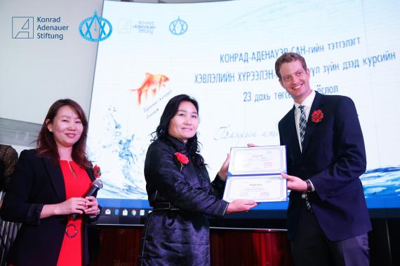 Um die Vielfalt der Presselandschaft und den unabhängigen Journalismus zu fördern, bildet die Konrad-Adenauer-Stiftung seit 2017 gemeinsam mit dem Presseinstitut der Mongolei junge Journalistinnen und Journalisten in der „KAS School for Journalism“ aus. In einem sechsmonatigen Intensivprogramm werden ihnen die Grundlagen journalistischen Arbeitens vermittelt. Den Absolventinnen und Absolventen des Jahrgangs 2018 wurden am Montag vergangener Woche ihre Abschlusszeugnisse überreicht.