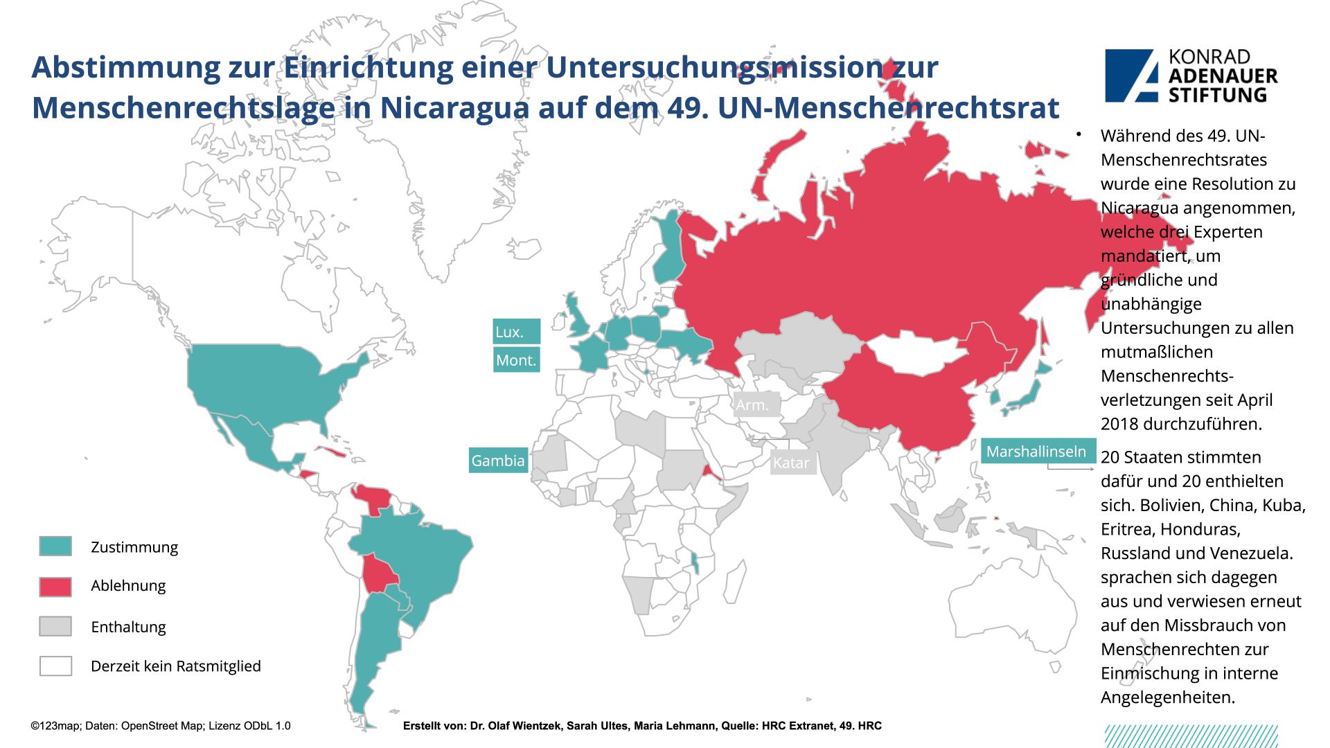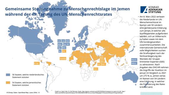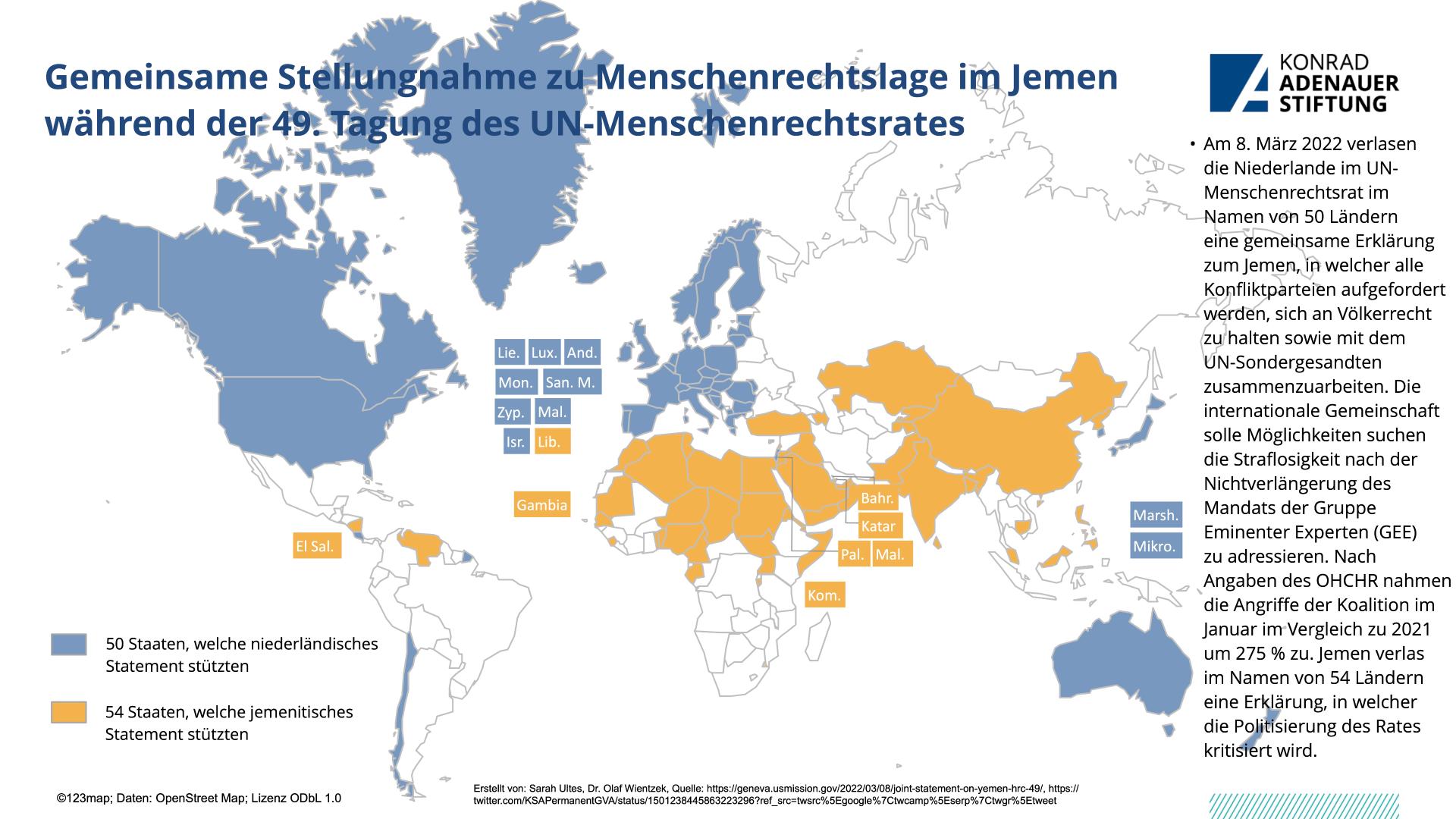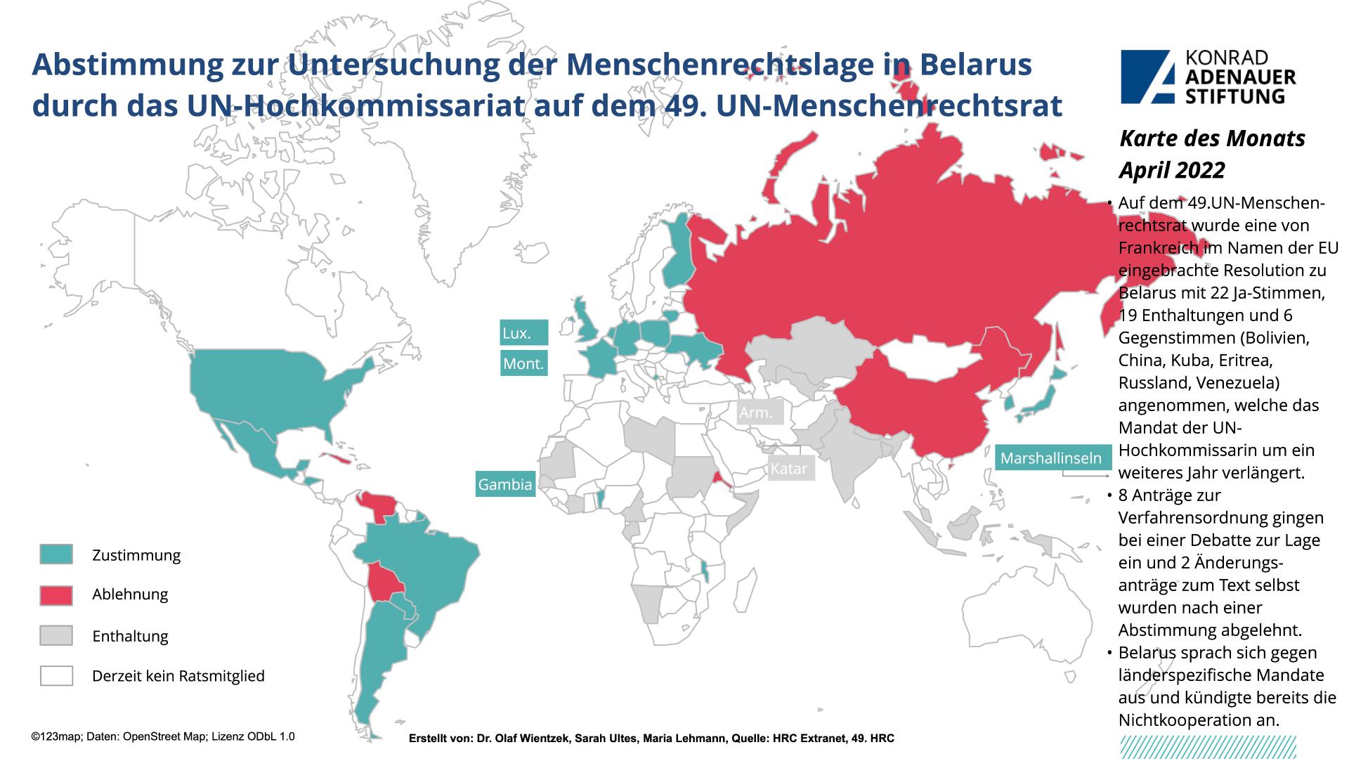 Vom 28. Februar bis 1. April 2022 tagte der 49. UN-Menschenrechtsrat in Genf. Damit war es die längste Sitzung in der Geschichte des Rates und nicht nur aufgrund der Lage in der Ukraine eine besondere Belastungsprobe für die multilaterale Diplomatie. Neben der Dringlichkeitssitzung und der Errichtung einer Untersuchungskommission für die Ukraine, gab es auch andere wichtige Abstimmungen, u.a. zur Verlängerung des Mandats der UN-Hochkommissarin Menschenrechtsverletzungen in Belarus weiter zu untersuchen oder zur Einrichtung einer Untersuchungsmission in Nicaragua. Auch zahlreiche gemeinsame Erklärungen wurden verlesen, u.a. zur Menschenrechtssituation in Russland oder dem Jemen. China sprach sich indes einmal mehr für einen staatszentrierten und Kritik vermeidenden "Menschenrechtsdialog" und damit auch eine veränderte Rolle des UN-Hochkommissariats aus.
