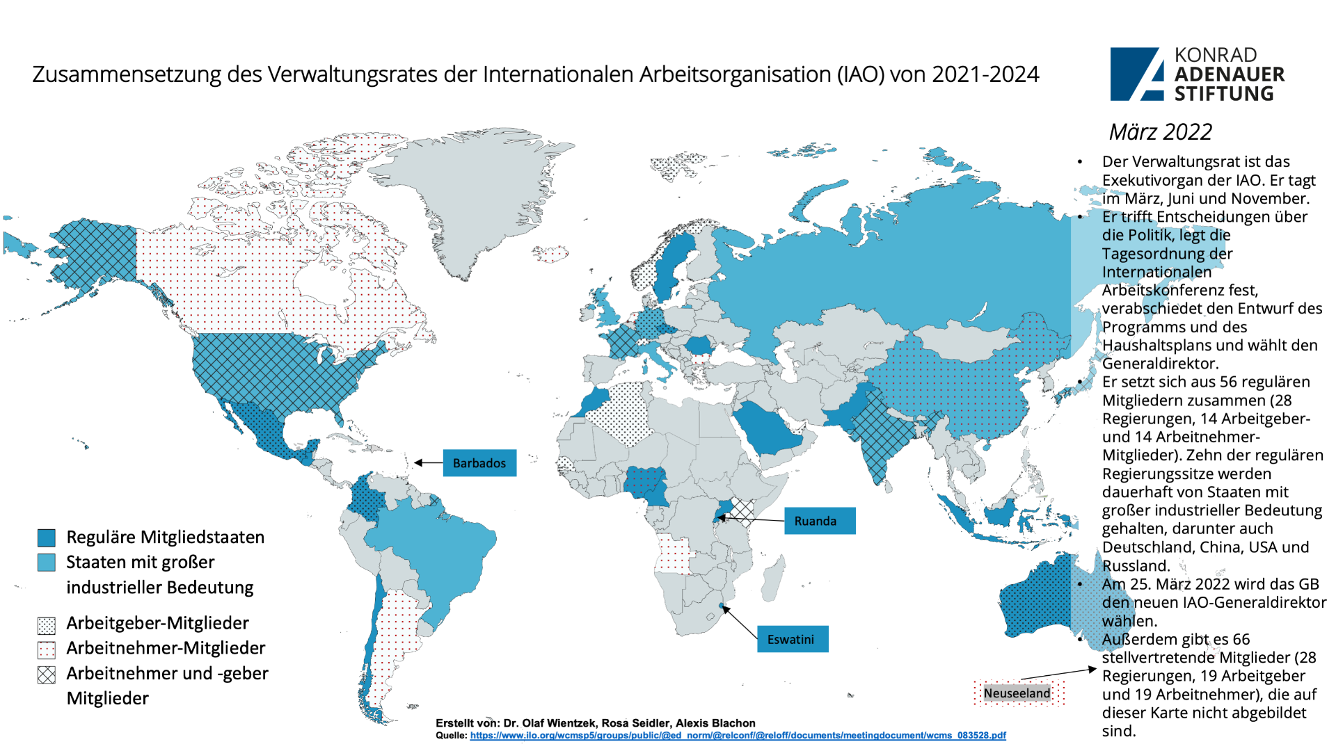 Die IAO ist die älteste Sonderorganisation und die einzige dreigliedrige Organisation der Vereinten Nationen: Sie bringt nicht nur Vertreter von Regierungen, sondern auch Arbeitnehmer - und Arbeitgebervertreter aus jedem ihrer 187 Mitgliedstaaten zusammen. Die IAO ist zuständig für die Entwicklung, Formulierung und Durchsetzung verbindlicher internationaler Arbeits- und Sozialstandards. Wichtigste Ziele: Förderung von menschenwürdiger Arbeit, sozialer Sicherung und die Stärkung des sozialen Dialogs.