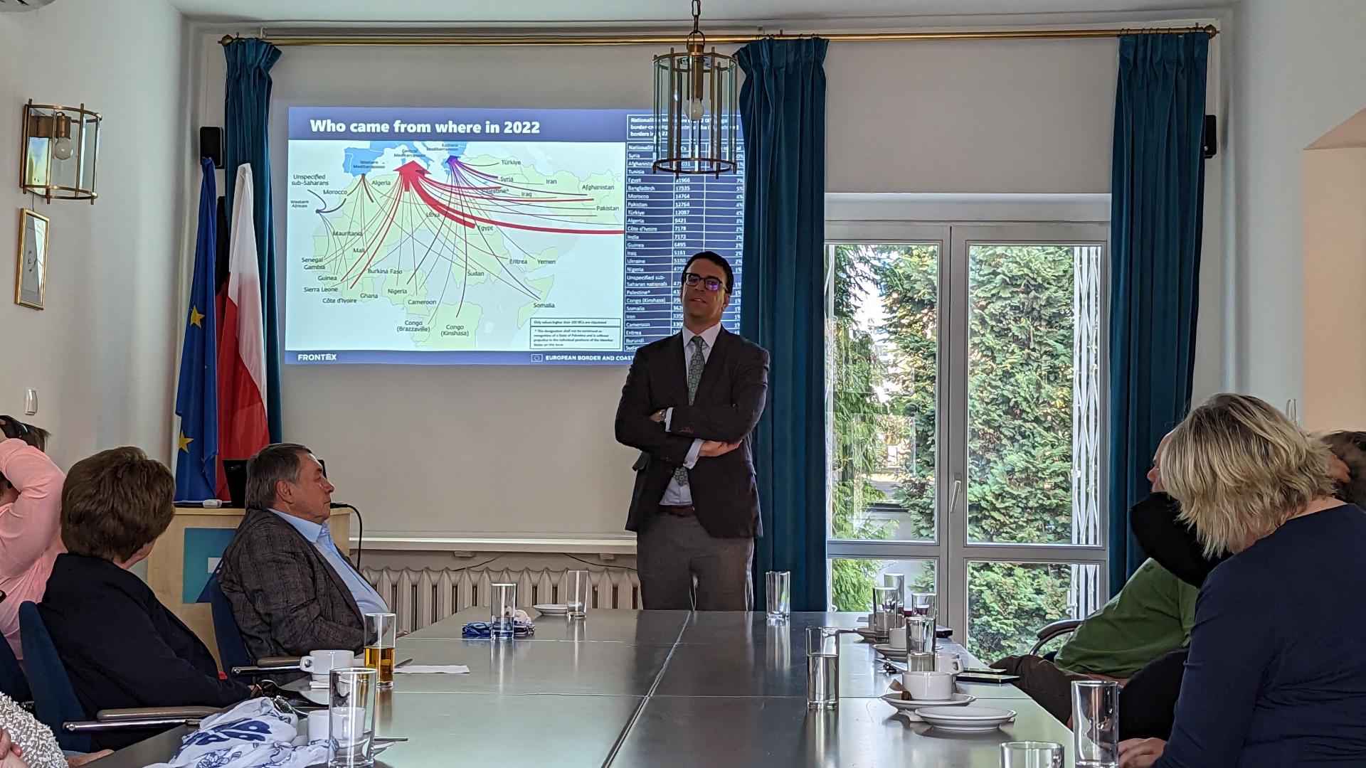 Migration ist ein zentrales Thema in der polnischen Innenpolitik. An der Grenze zu Belarus hat Polen 2022 einen breiten Zaun errichtet, um die zwischenzeitlich massive und von der belarussischen Regierung bewusst forcierte illegale Migration abzuwehren. Die PiS ist zudem bekannt dafür, die europäische Migrationspolitik immer wieder scharf zu kritisieren. In das Thema führte Holger Fabian Sahl ein. Er ist Vertreter und Sprecher der Europäischen Agentur für die Grenz- und Küstenwache, Frontex. Deren Sitz liegt seit der Gründung 2004 in Warschau. Sahl räumte populäre Fehlannahmen über Frontex aus dem Weg. Auch betonte er, dass die Agentur nicht das leisten können werde, was sich viele Laien von ihr erwarten – die umfassende Begrenzung illegaler Migration. Dazu bedürfte es eines Konsenses und der gemeinsamen Strategie der Mitgliedstaaten.