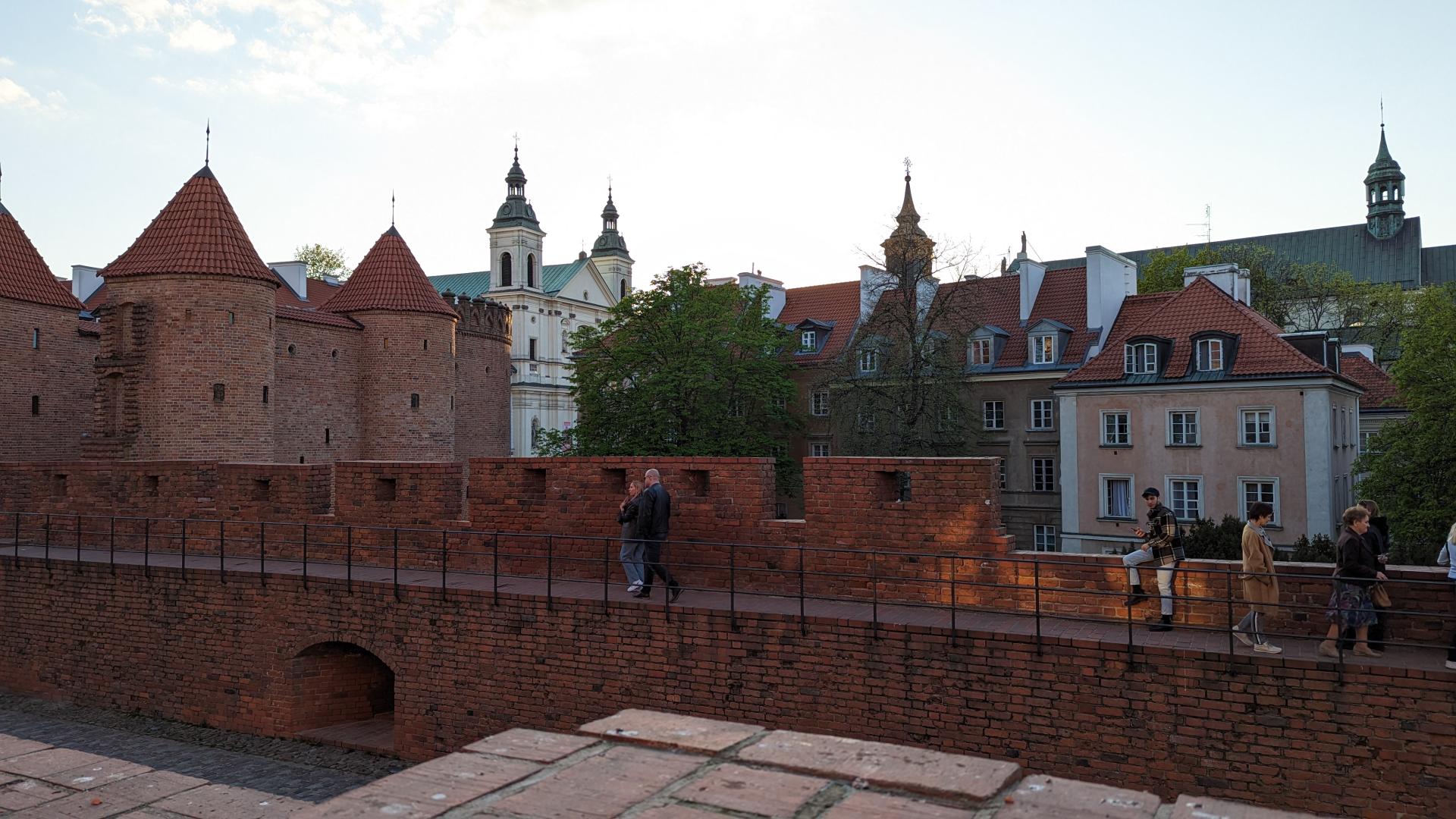 Rasch vorbei ging es am eindrucksvollen Denkmal des Warschauer Aufstandes vor dem opulenten Gebäude des Obersten Gerichts: massive Betonträger, die mutig vorwärts preschende Soldaten zu erschlagen drohen. Vorbei auch an einem mit Blumen gesäumten Mahnmal, das an das Massaker von Katyn erinnert. Entlang der mittelalterlichen, aus zwei Mauerreihen errichteten Warschauer Stadtmauer, dann hinein auf den ältesten, nach dem Krieg wieder aufgebauten Platz der Stadt. In der Mitte steht die Skulptur einer Meerjungfrau, die auch an anderen Ecken und Orten in Warschau ihren Platz hat, und die sich natürlich im Stadtwappen findet – sie geht auf eine Zeit zurück, als Warschau noch eine Fischersiedler war. Mitunter tritt sie als Kriegerin auf.