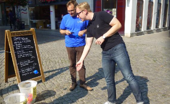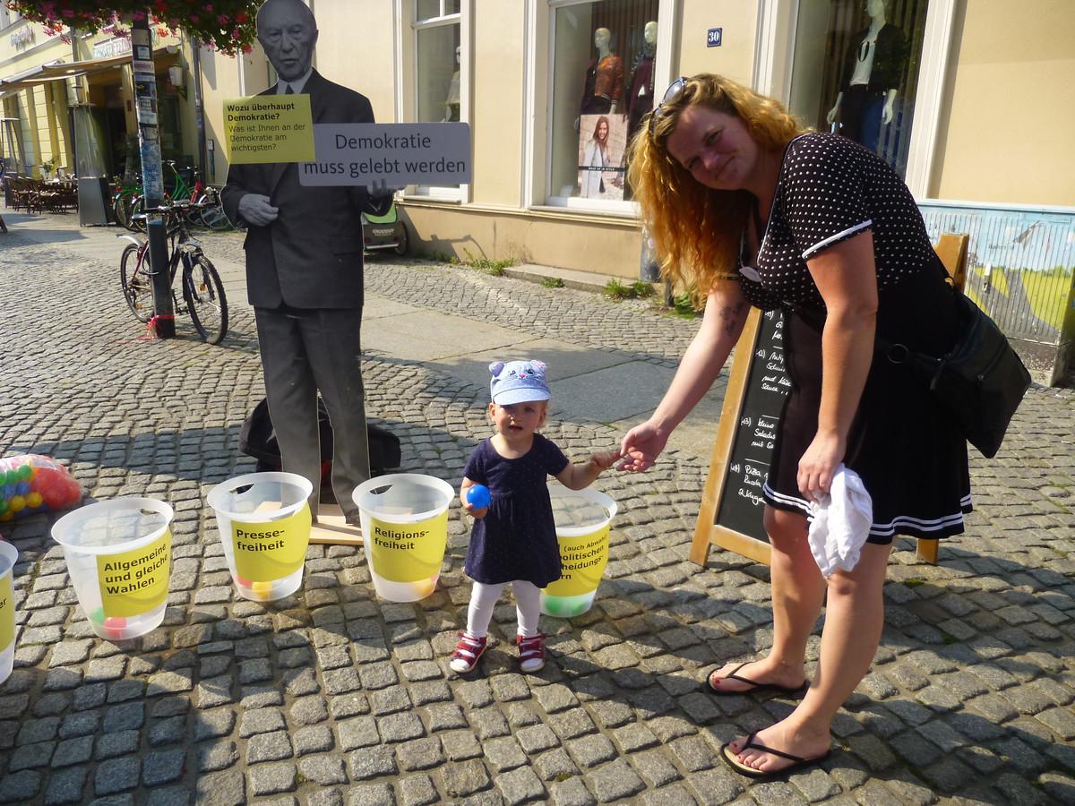 Nicht nur Studenten, MdL's und viele weitere Interessenten beteiligten sich an unserer Straßenumfrage zu den persönlich wichtigsten Demokratiemerkmalen; auch Kinder fanden's spannend ...... vor allem die bunten Umfragebälle :-)